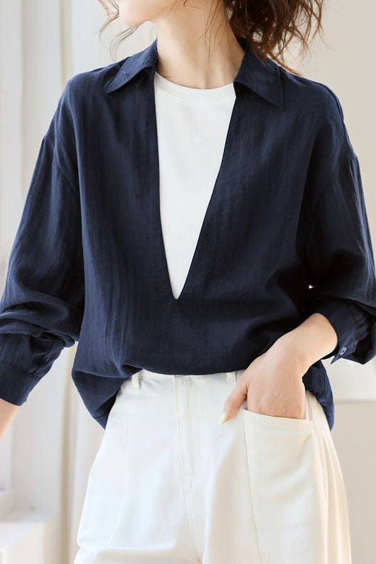 Minimalist Office Wide V-Neck Blouse