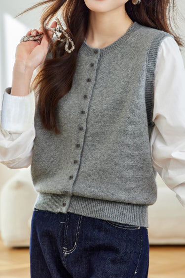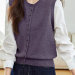 Knit Cardigan, Polo Collar Long Sleeves, Fake Two-Piece Paneled Design (Shirt + Cardigan Vest), Button Closure at Front Center, Button Closure on Cuffs |