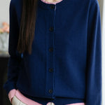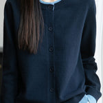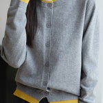 Casual Crew-Neck Fake Two-Piece Paneled Cardigan