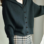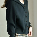 Knit Cardigan, solid color, hooded design, front single-button closure, batwing sleeve raglan design |