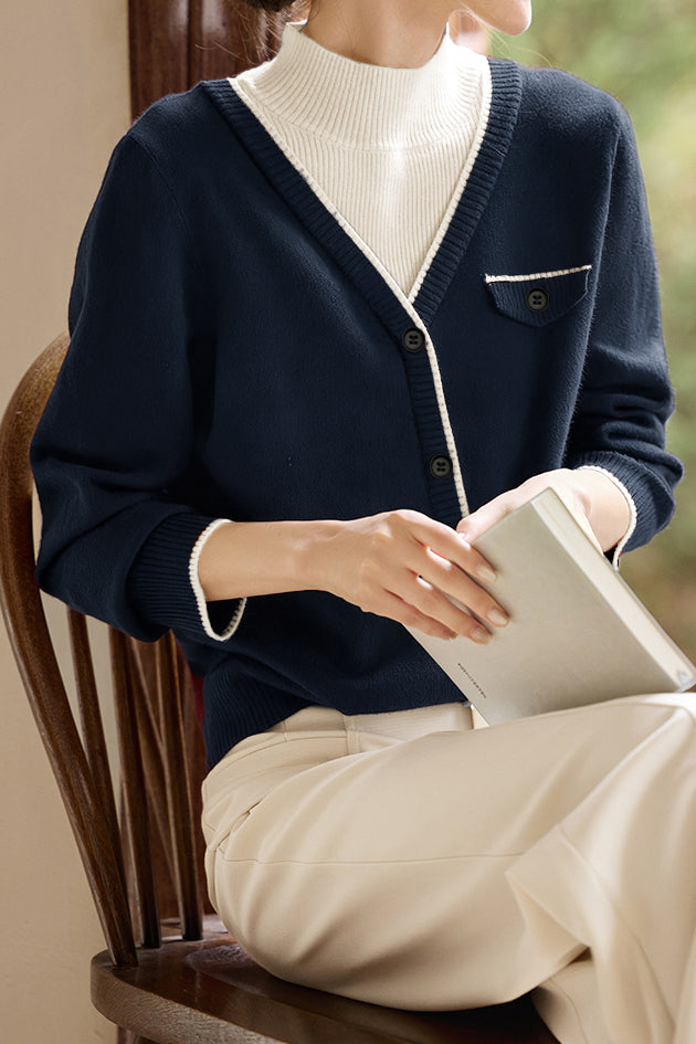 Casual Commuter Faux Two-Piece Color-Blocked Knit Top