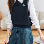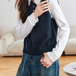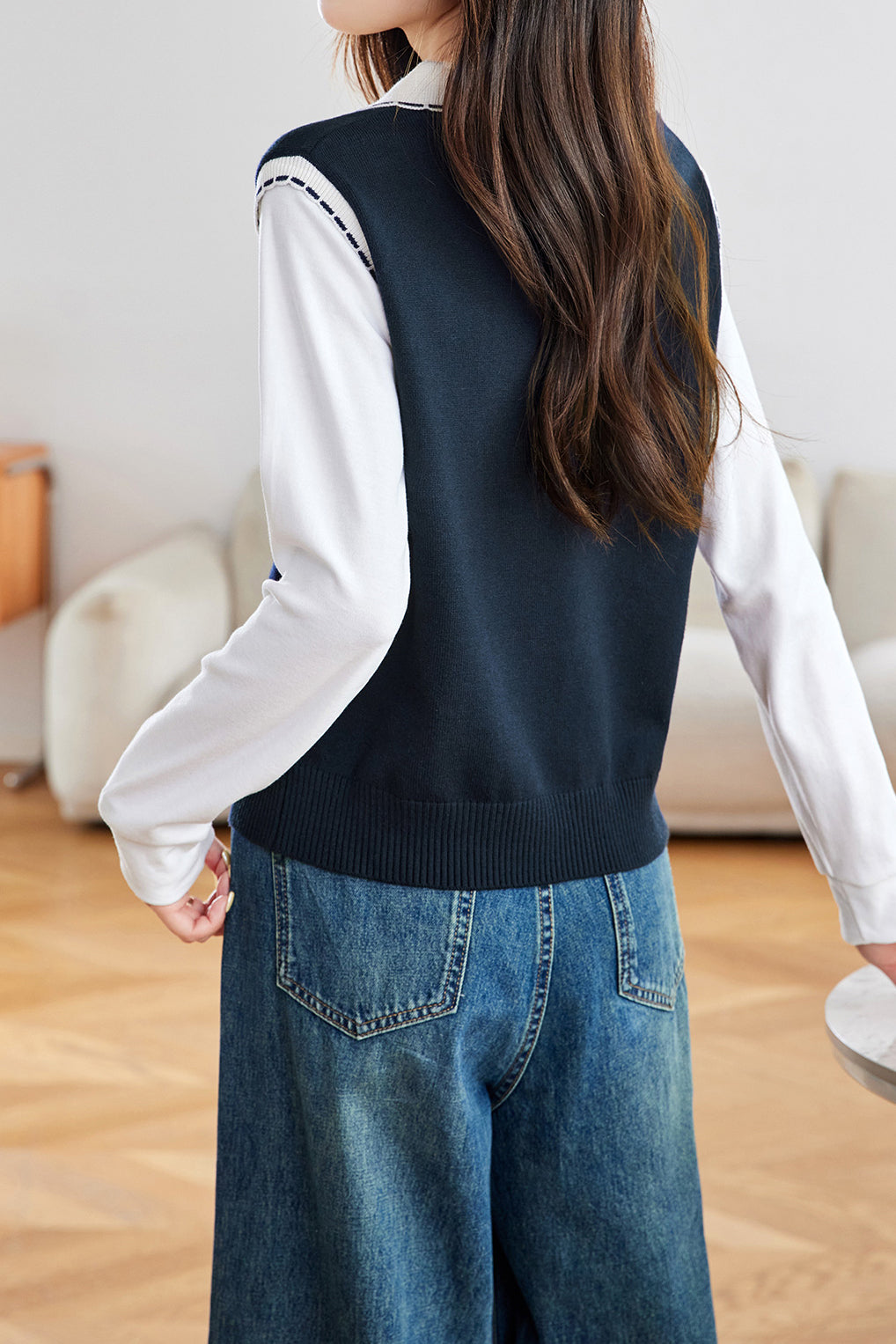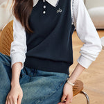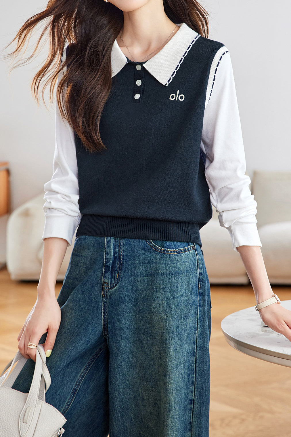 Casual Commuter Shirt Vest Faux Layered Knit Top