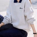 Pullover sweatshirt with color-block polo collar, letter embroidery on the chest, and loose fit |