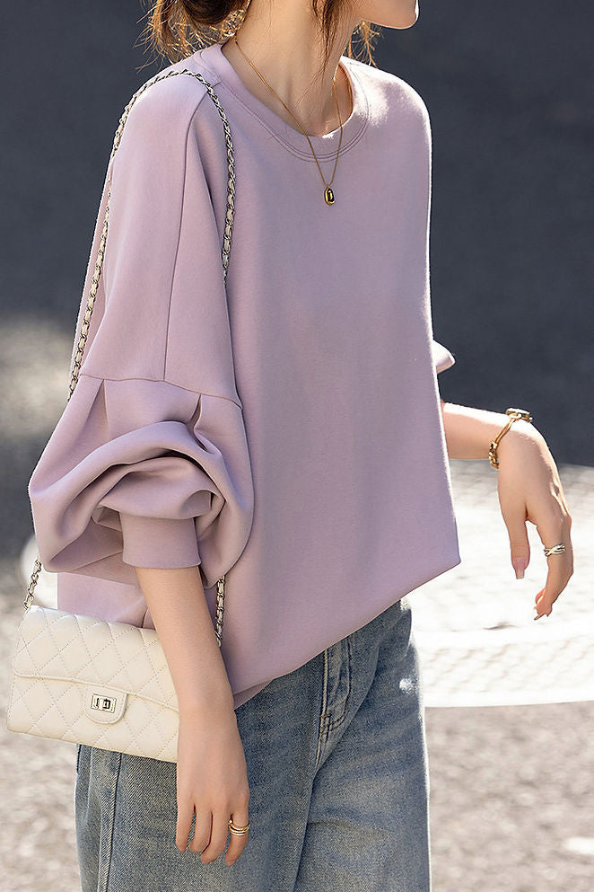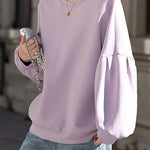 Casual Loose Round Neck Lantern Sleeve Sweatshirt