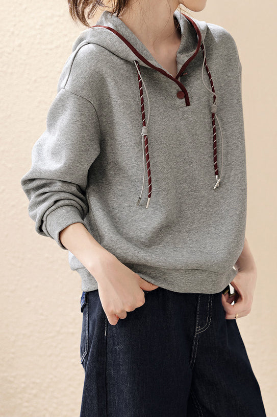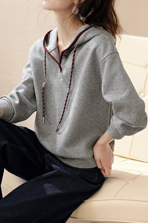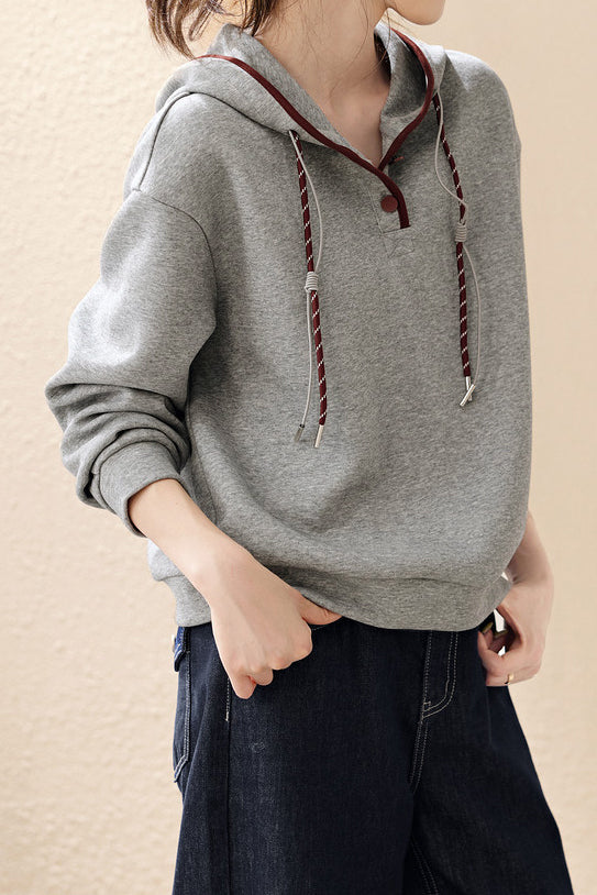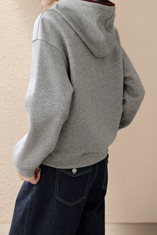 Hoodie, loose fit, neckline with buttons to adjust collar size, brim and drawstring with color-block design |