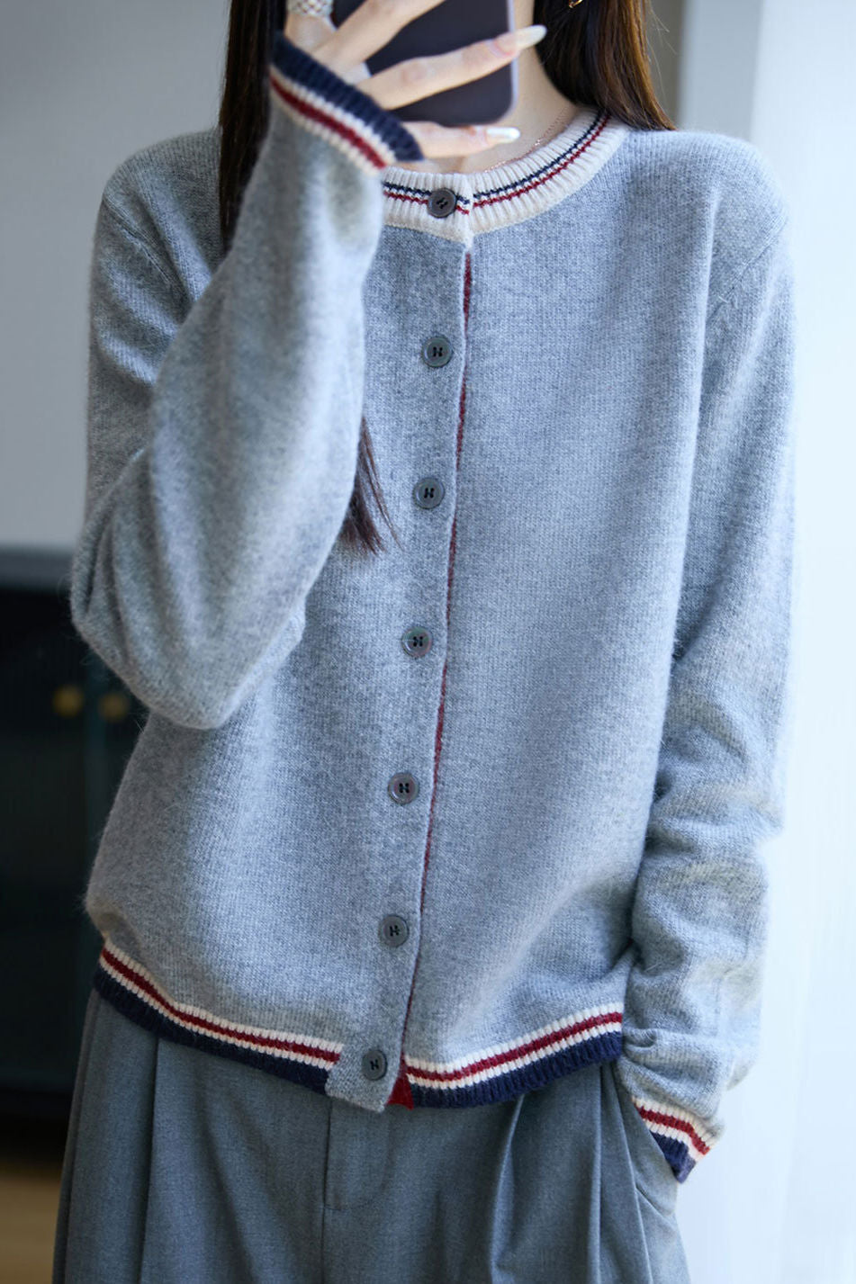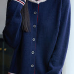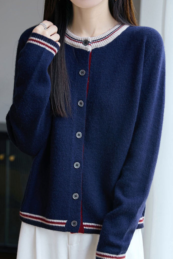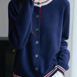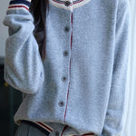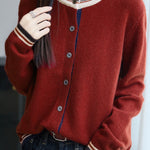 Casual Versatile Crew Neck Color-Block Loose Knitted Cardigan
