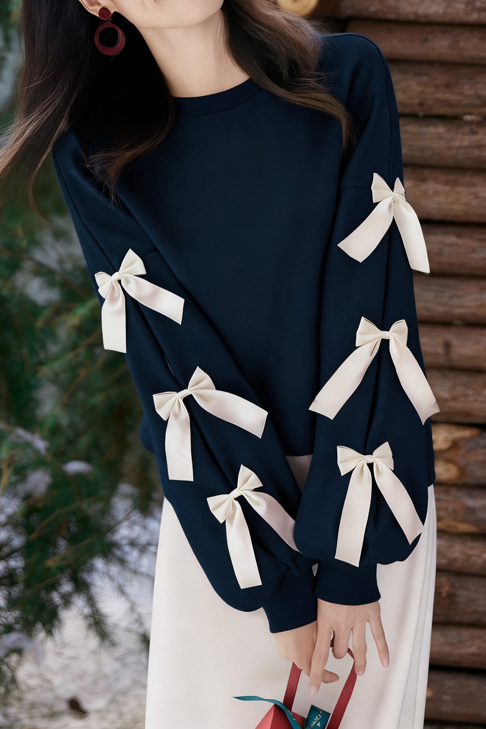 | Product details | Pullover hoodie,solid color,crew neck long-sleeve loose fit,bow decoration on sleeves |