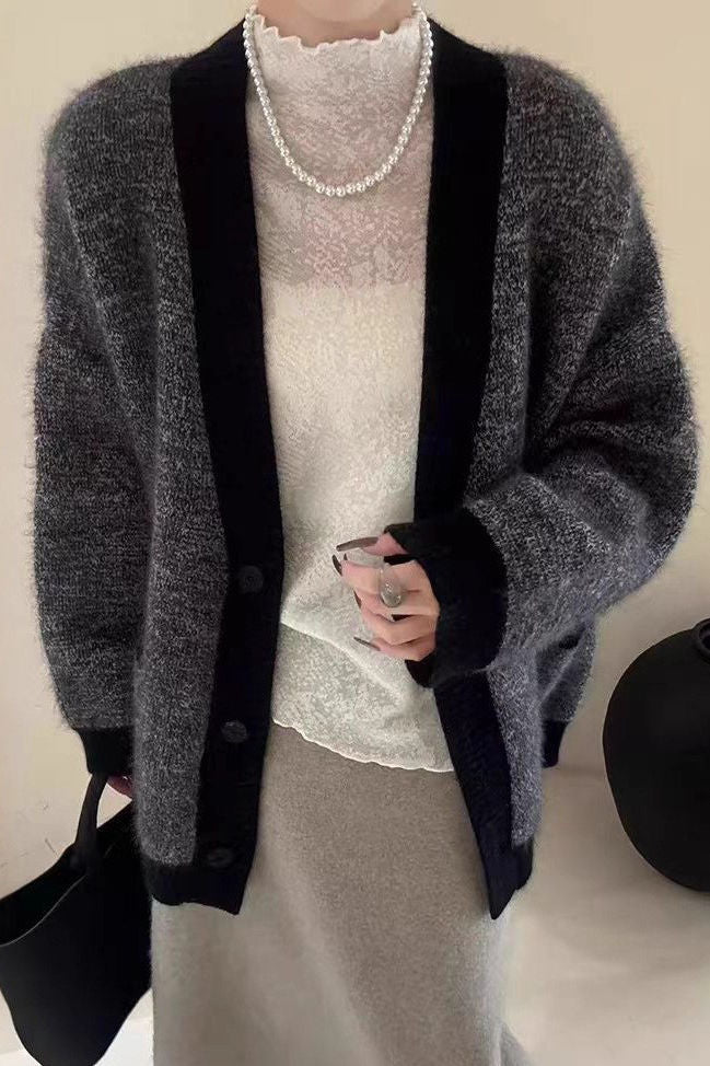 | Product details | Cardigan,v-neck long-sleeve loose fit,front center with openable buttons,elastic binding on neckline,placket and cuffs |