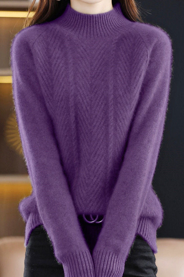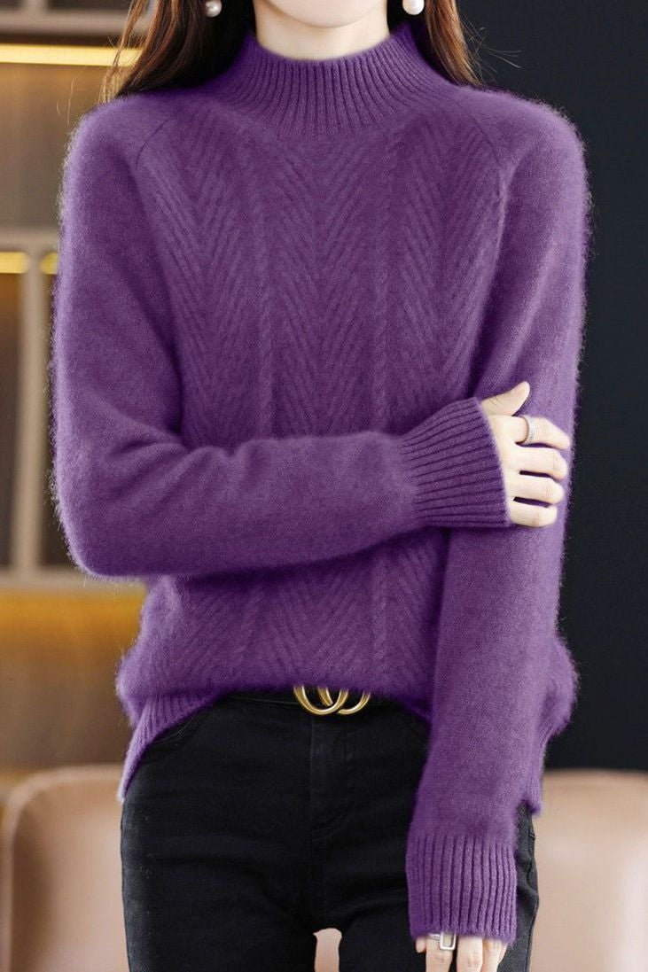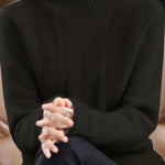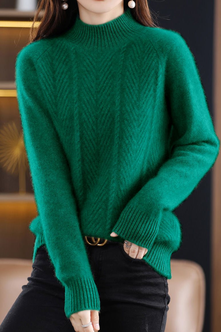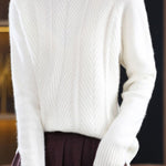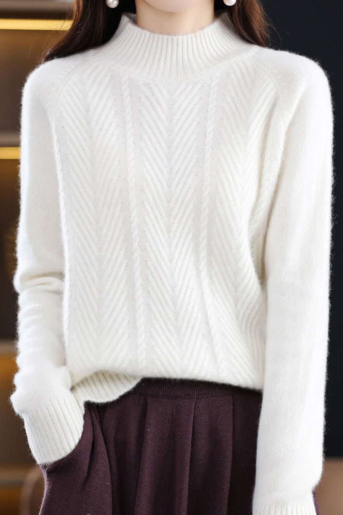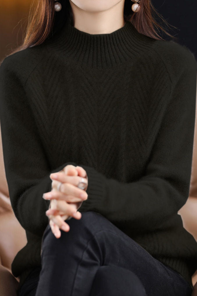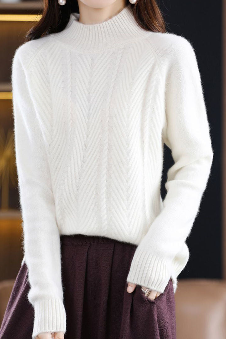 | Product details | Pullover sweater,solid color,medium-high neck long-sleeve loose fit,body with vertical arrow-shaped rib design |