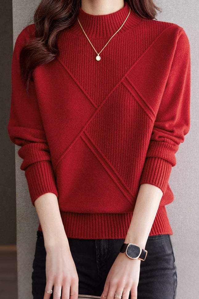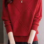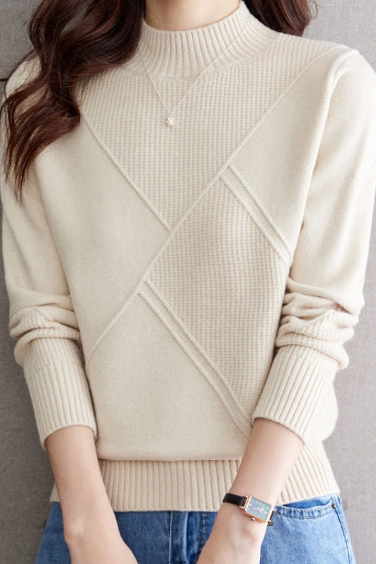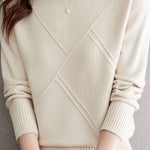 Casual Half-High Neck Diamond-Patterned Pullover Sweater