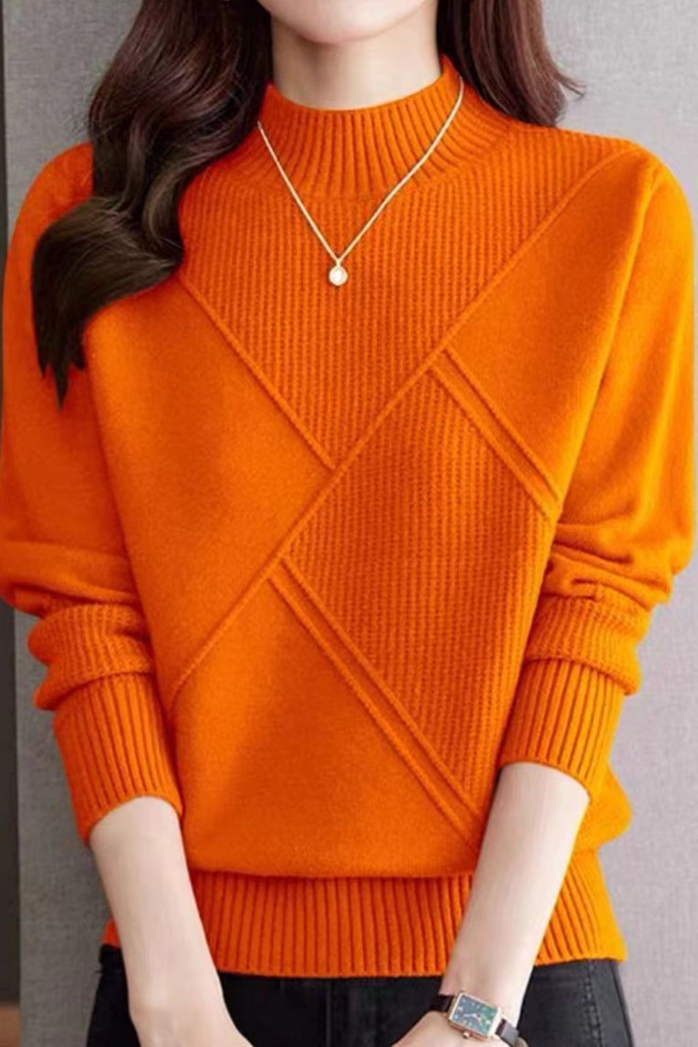 | Product details | Pullover sweater,solid color,medium-high neck long-sleeve loose fit,body with asymmetric diamond pattern design |