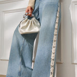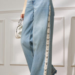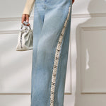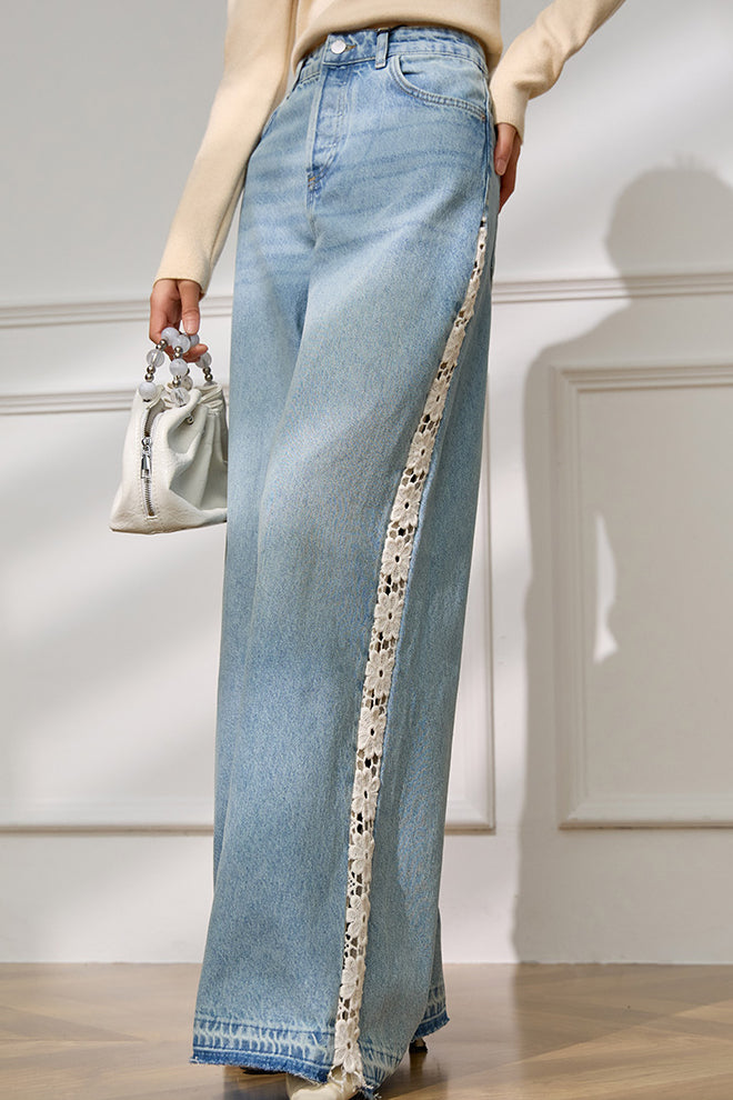 Casual Washed Lace Patchwork Straight Leg Jeans