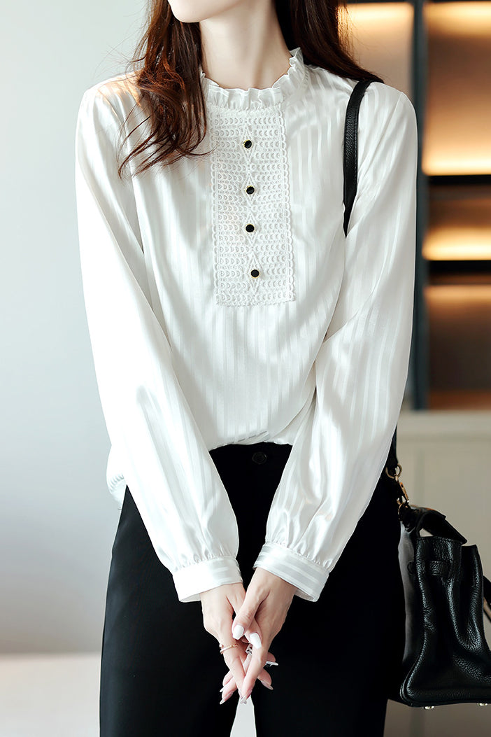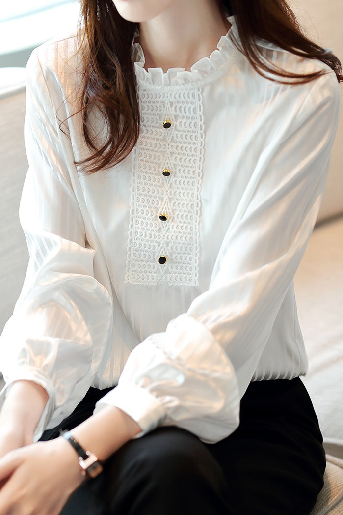 Casual Versatile Ruffle Lace Shirt