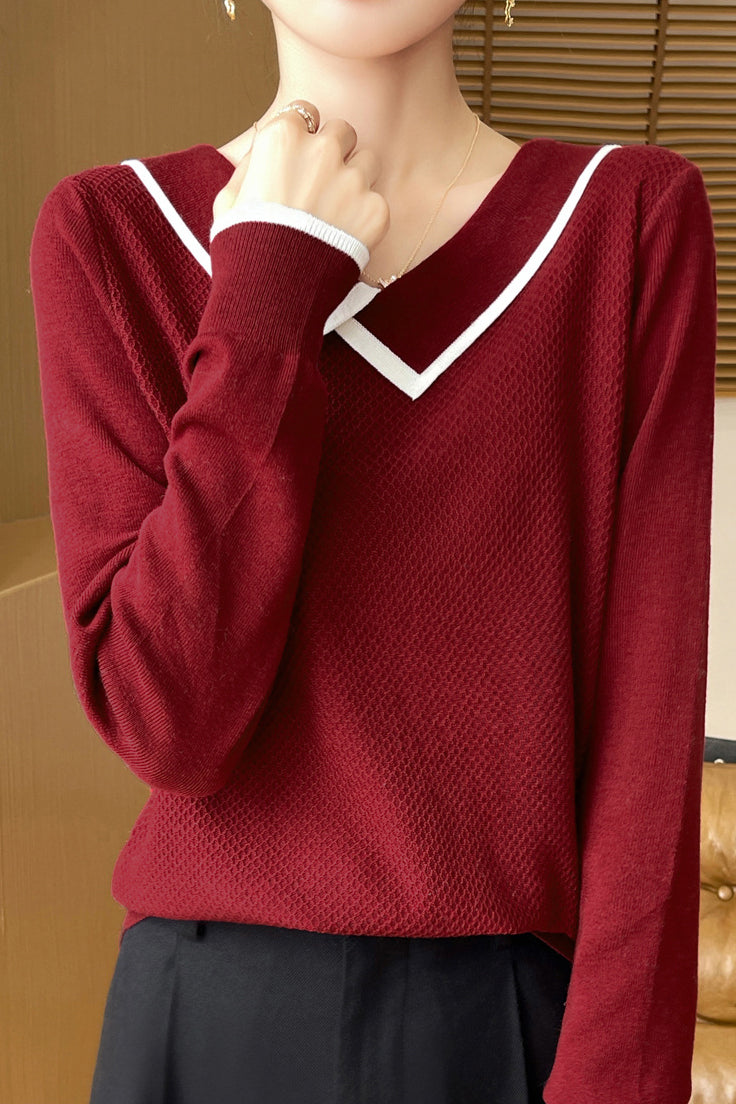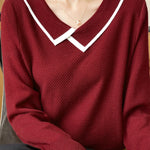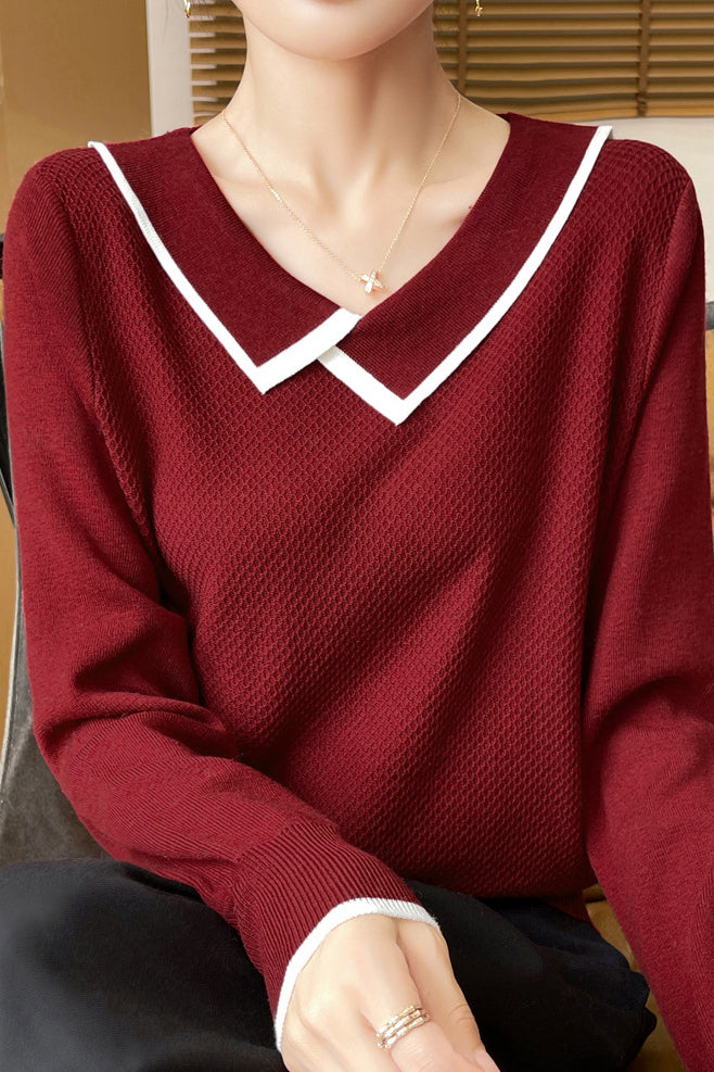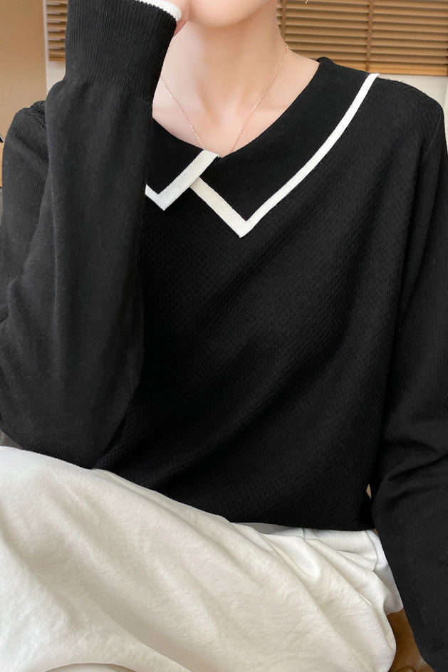 Casual Asymmetric Color-Block Lapel Knitted Top