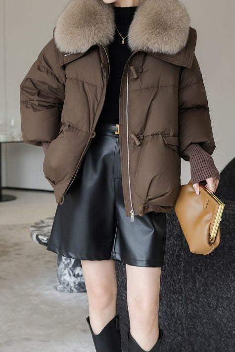 Casual Versatile Fur-Collar Short Cotton-Padded Coat