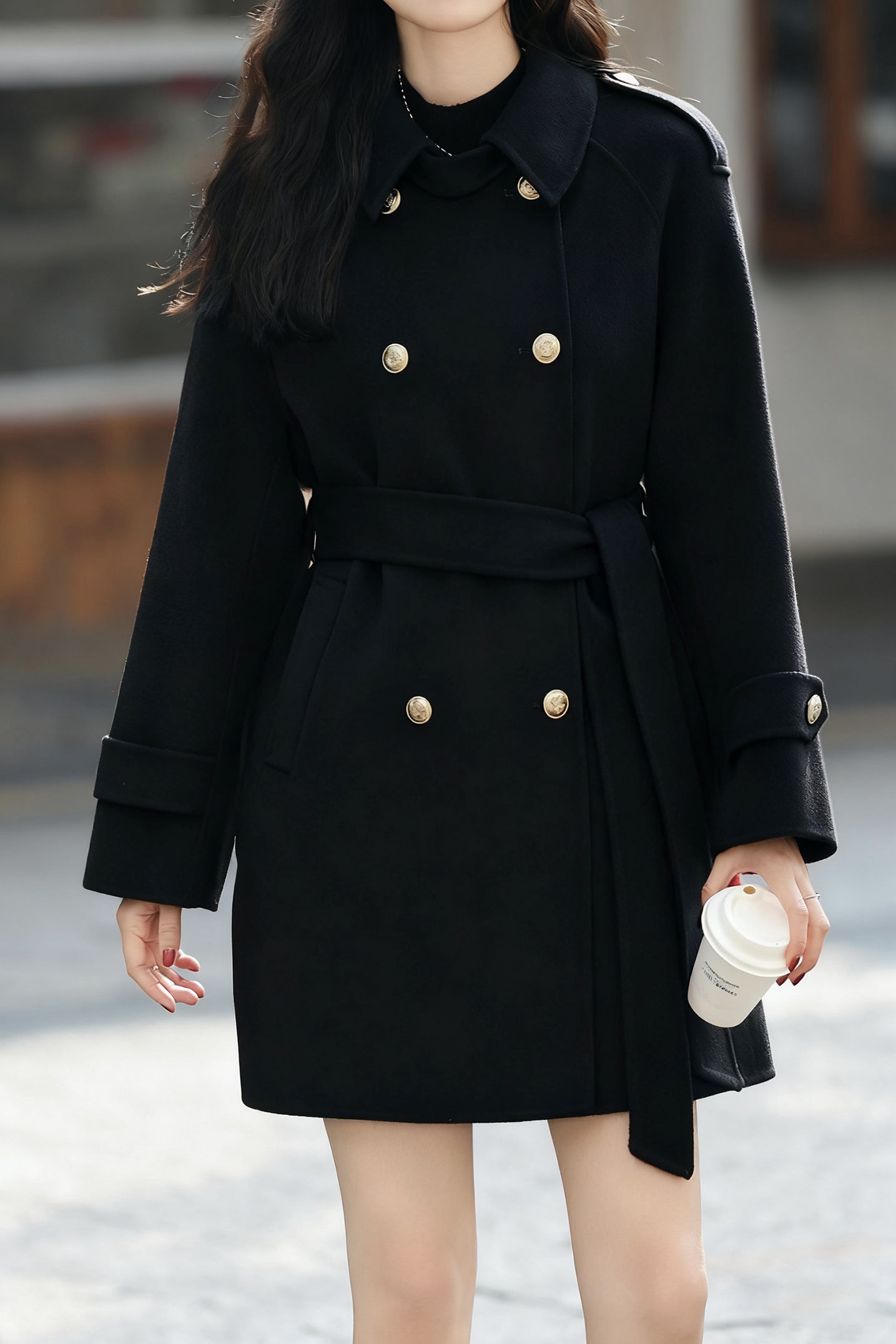 Elegant Temperament Retro Double-Breasted Woolen Coat