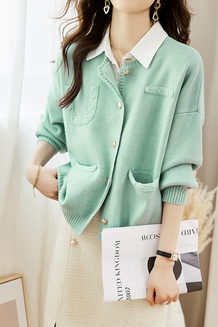 Casual Versatile Crew Neck Solid-Color Knitted Cardigan Coat