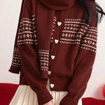 Cardigan, with detachable scarf design, open-front with heart-shaped buttons for fun, body decorated with geometric patterns, soft and delicate knitted fabric |