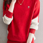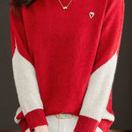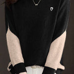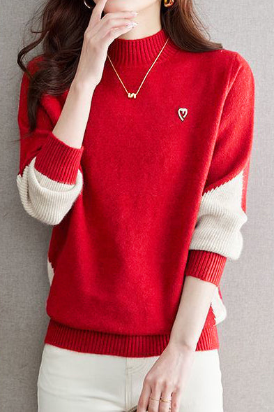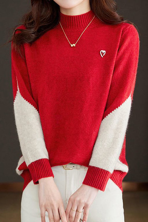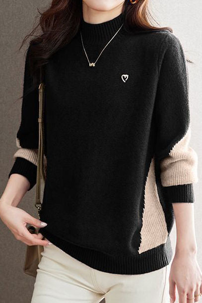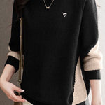 Casual Minimalist Half-High Neck Color-Block Pullover Long-Sleeve Sweater