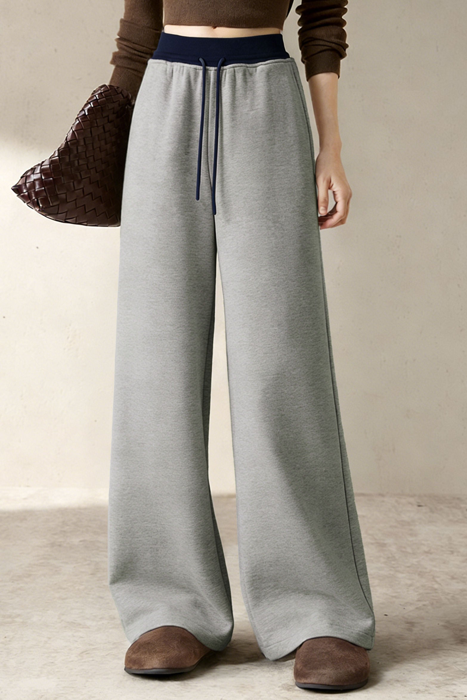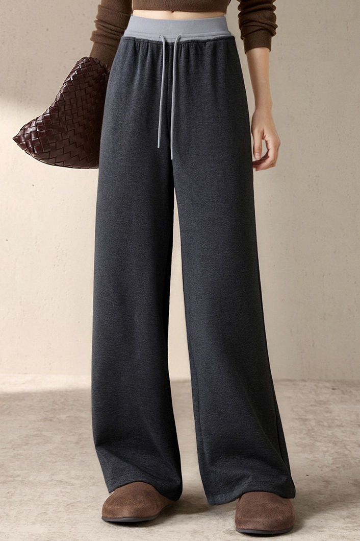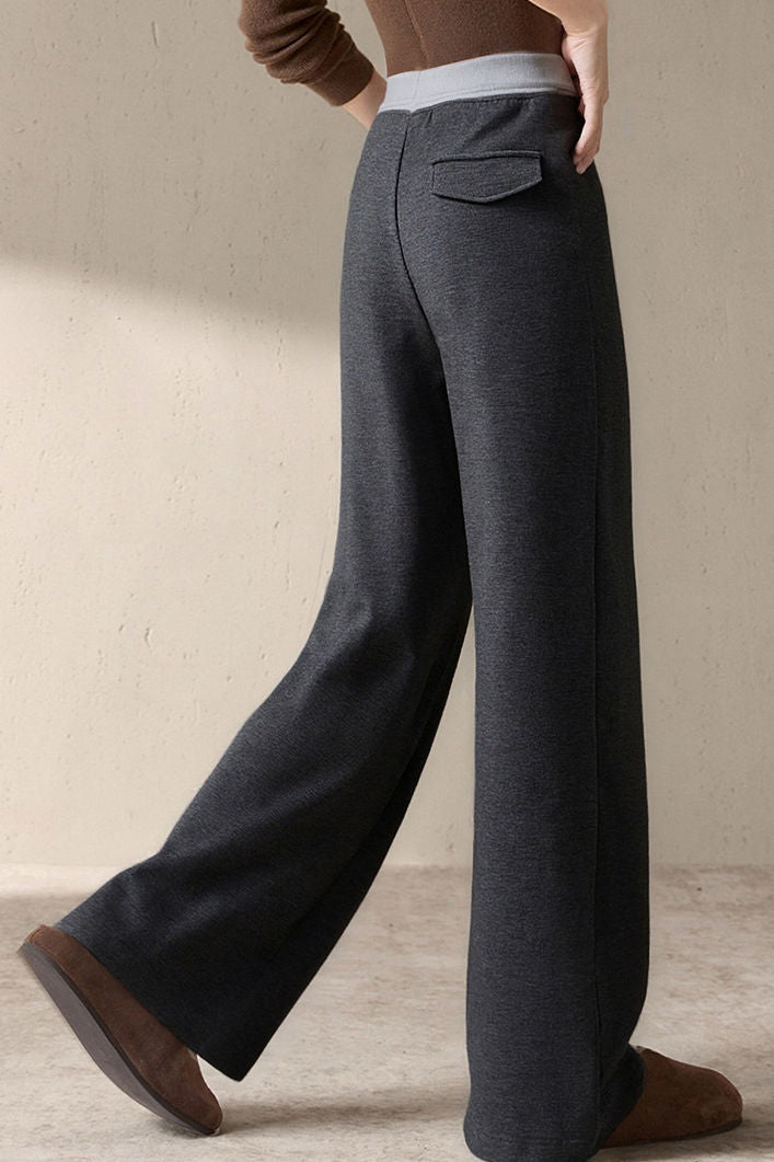 Casual Versatile Color-Block Waist Wide-Leg Pants