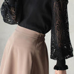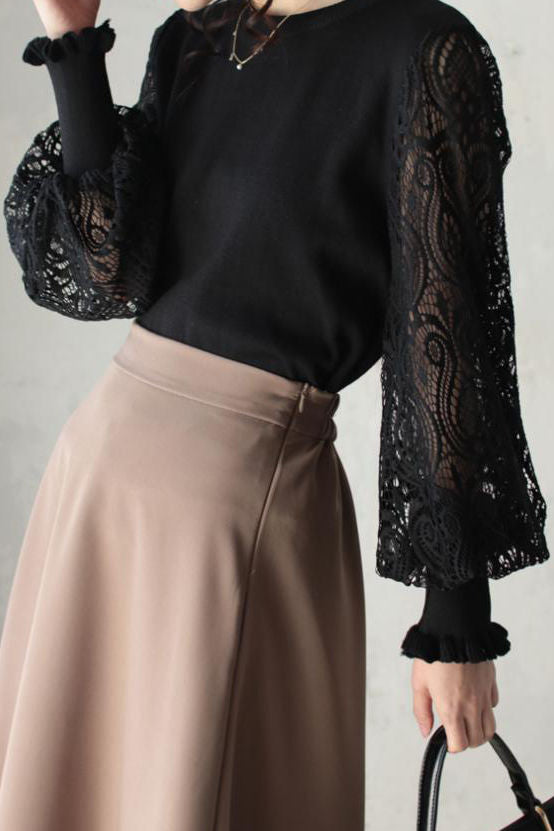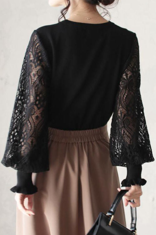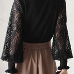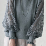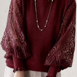 Elegant Temperament Patchwork Lace Puff Sleeve Knitted Top