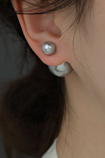 Earrings, double-pearl design, main pearl diameter 16mm, hypoallergenic 925 sterling silver material, pearls with smooth and lustrous finish, exquisite craftsmanship for a comfortable fit on ears