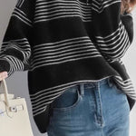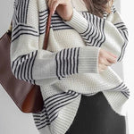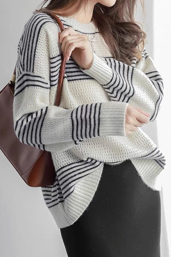 Casual Versatile Striped Hollow-Out Pullover Knitted Top