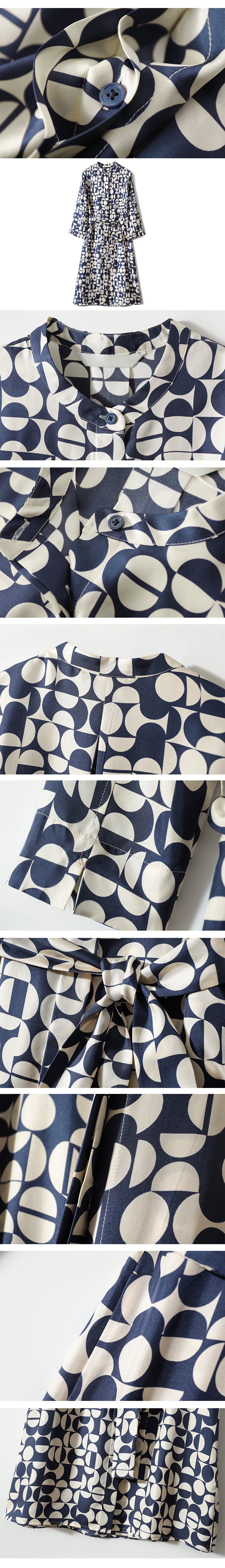 Placket Front Geometric Pattern Belted Shirt Dress