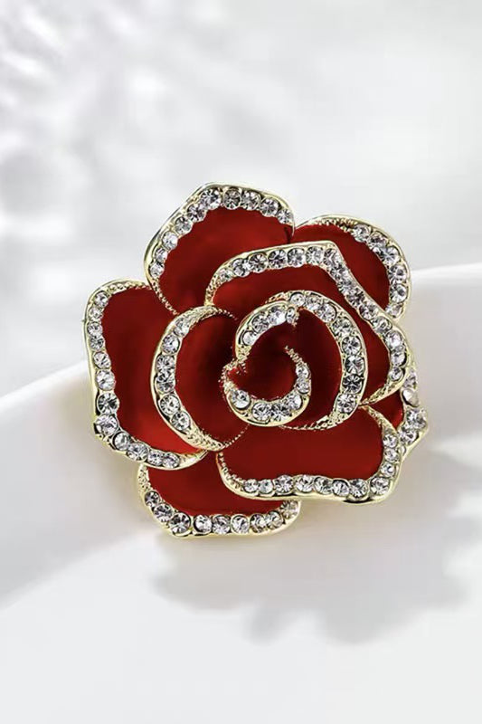 3D Rhinestone Rose Brooch, an elegant accessory featuring a rose design adorned with rhinestones |