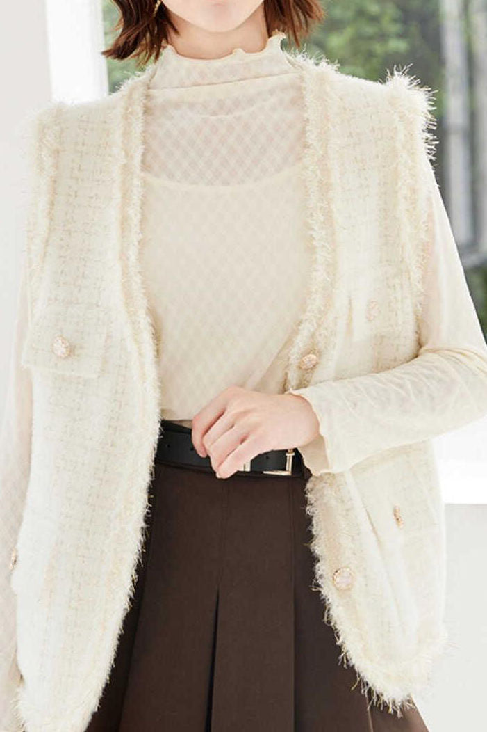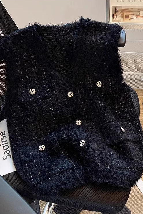 Knitted Vest, V-Neck Sleeveless, Front Open Placket with Removable Buttons |
