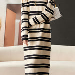 Dress, Crew Neck Long Sleeves, Irregular Striped Design, Loose Fit |