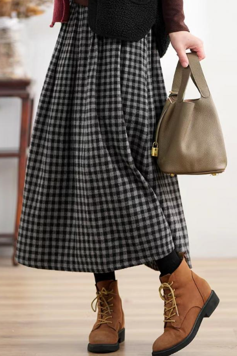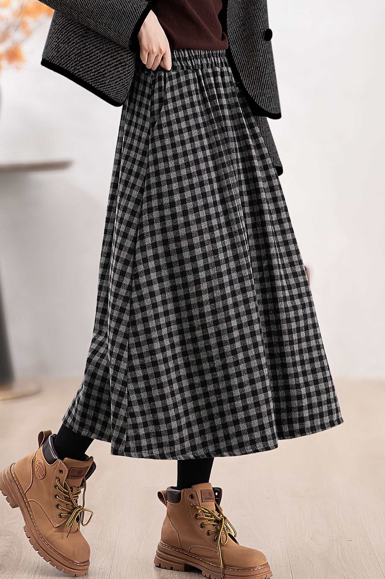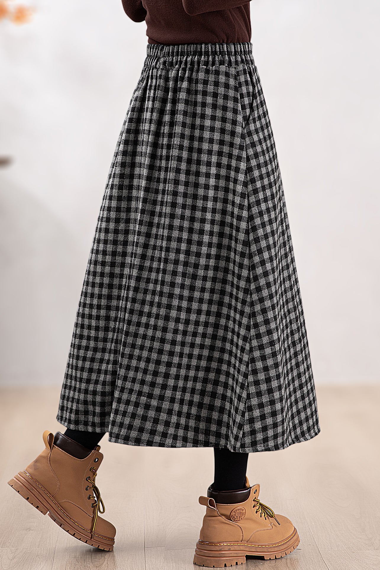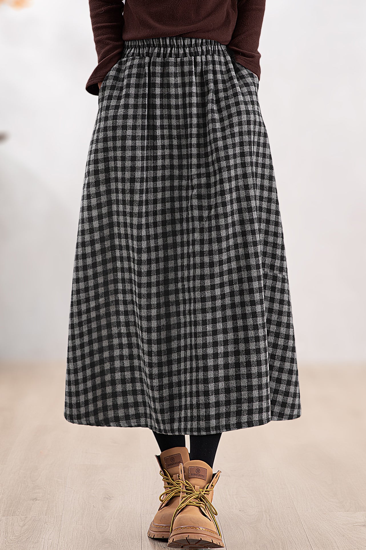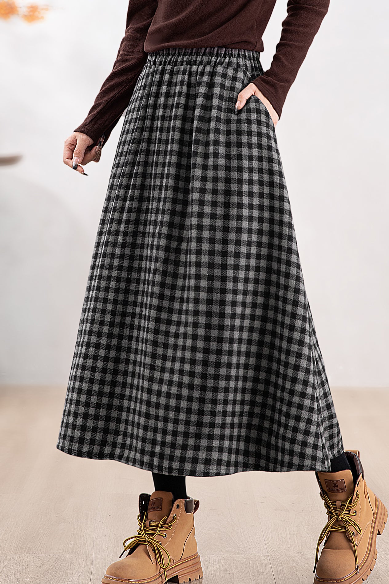 Skirt, high-waisted design, A-line silhouette, elastic band at waist, side pockets |