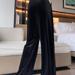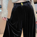 Casual Commuter Velvet Pleated Wide-Leg Trousers