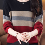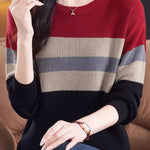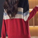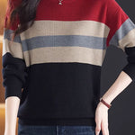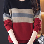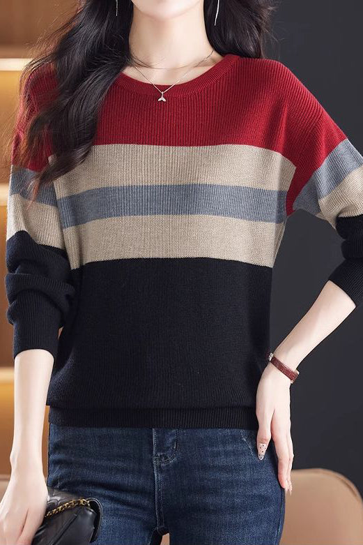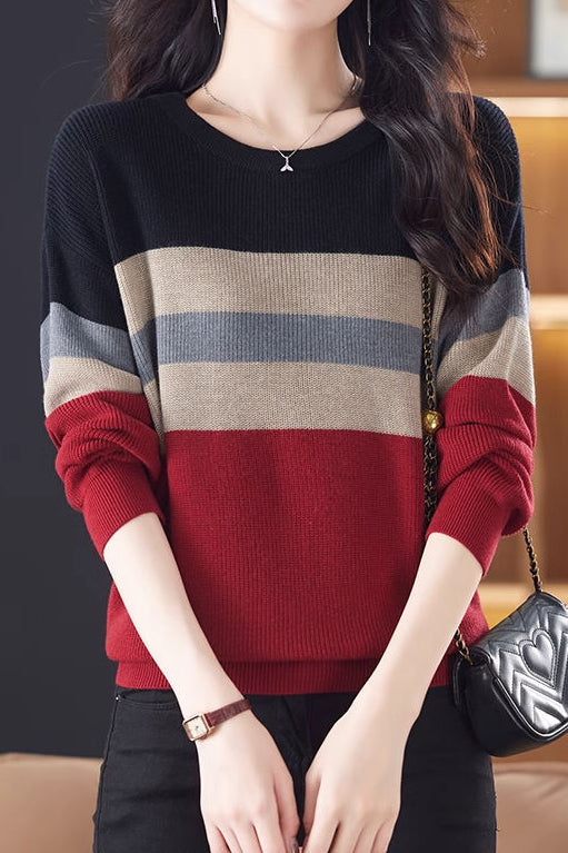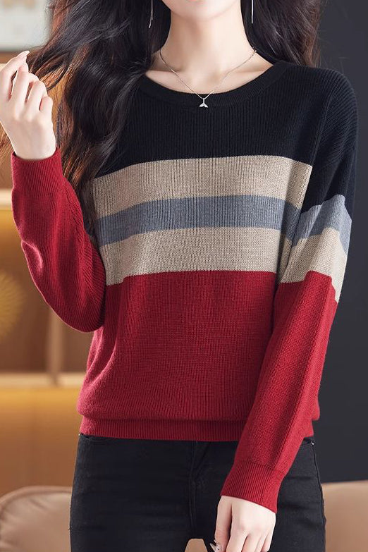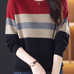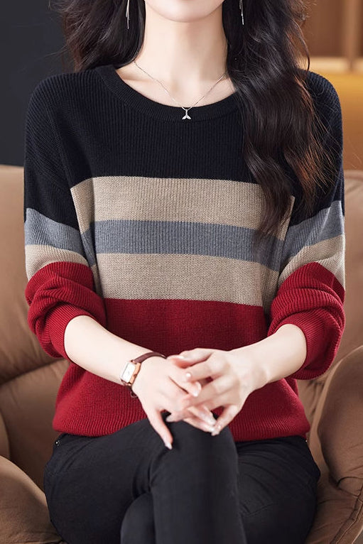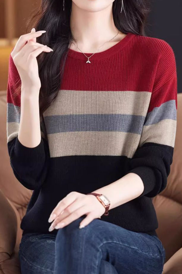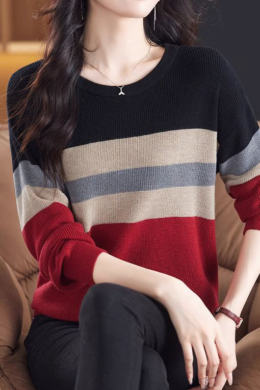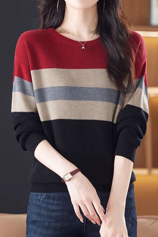 Casual Round Neck Color-Block Striped Long Sleeve Sweater