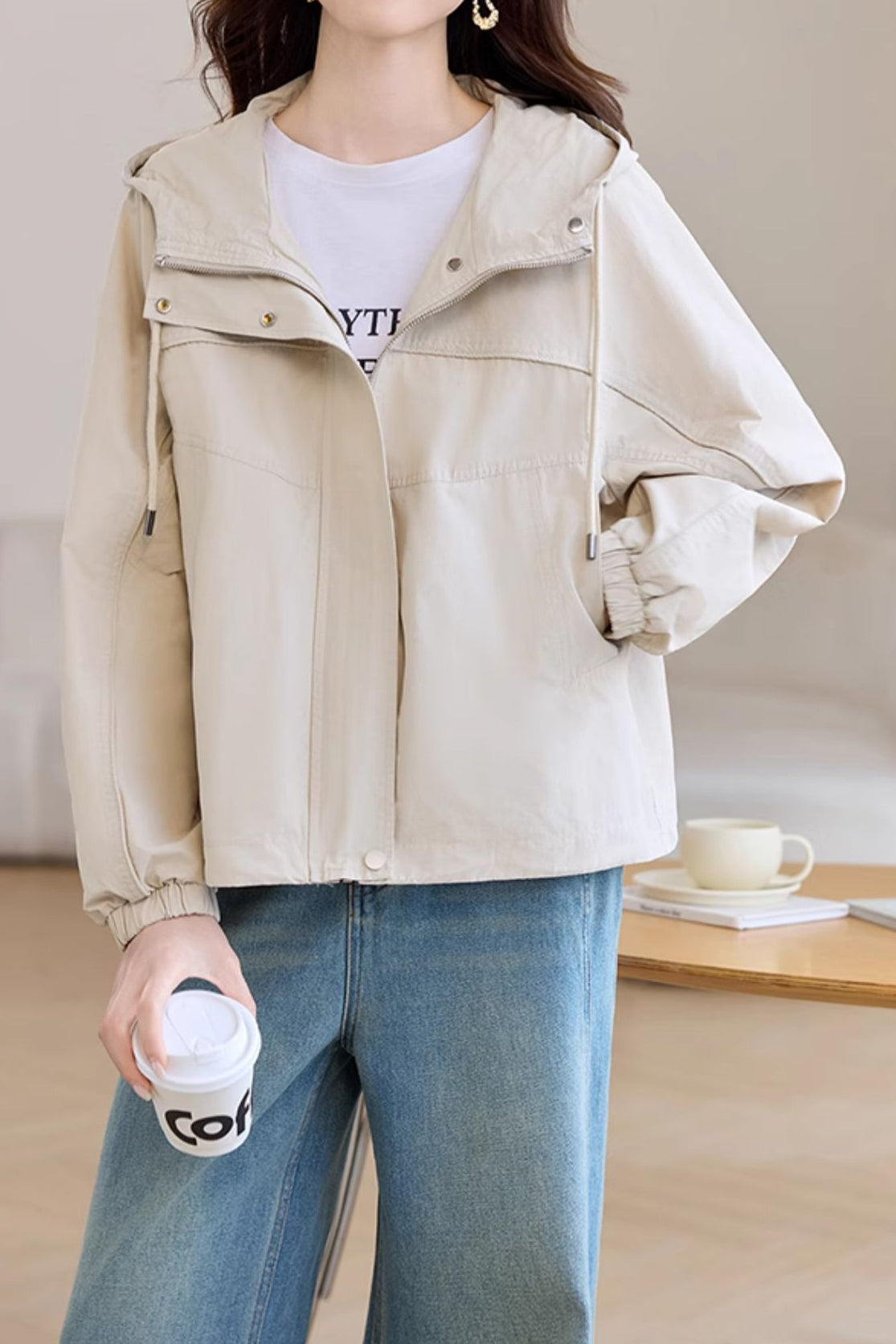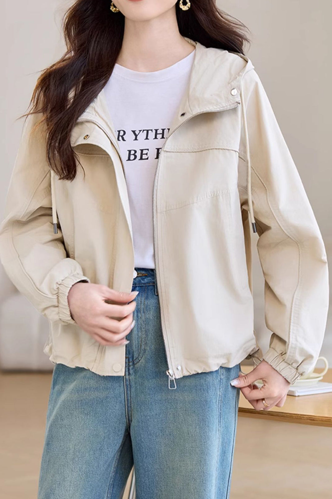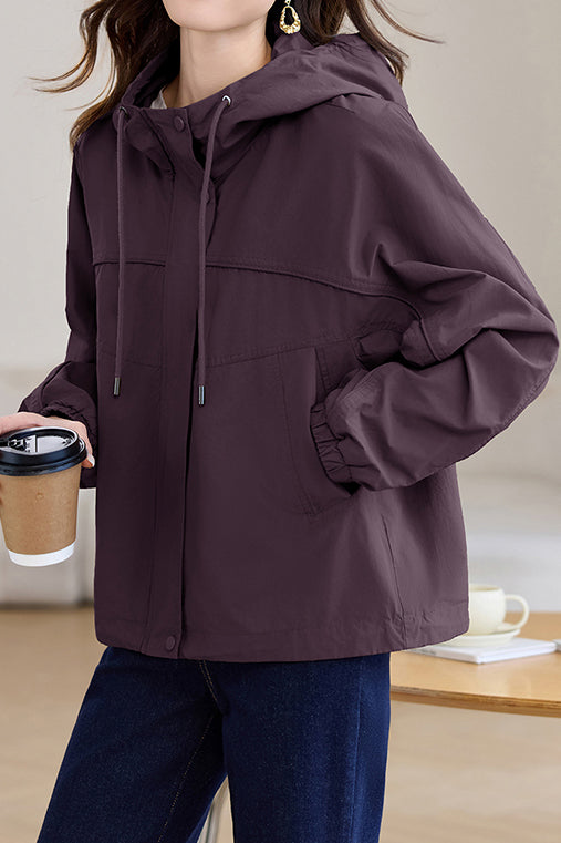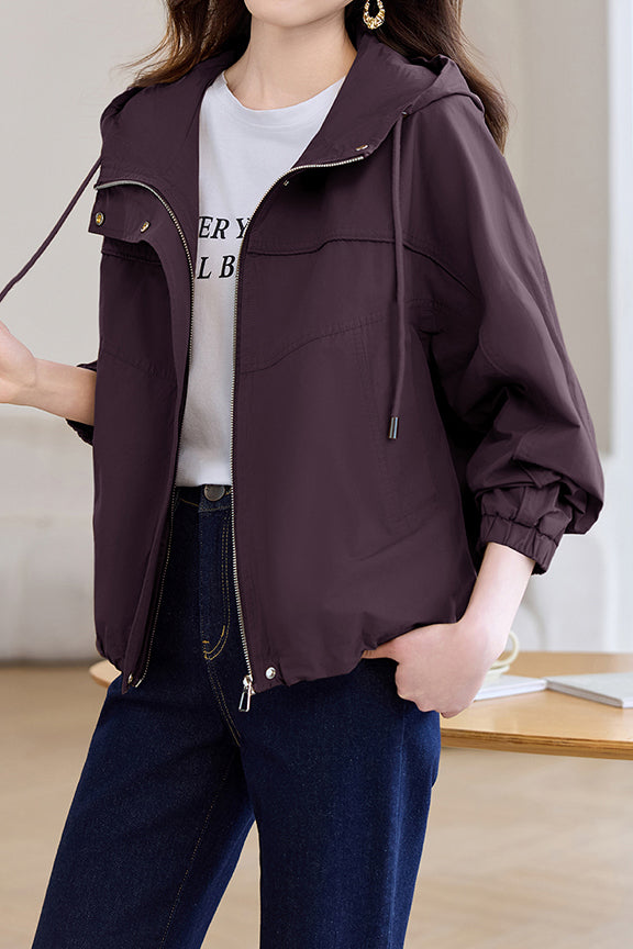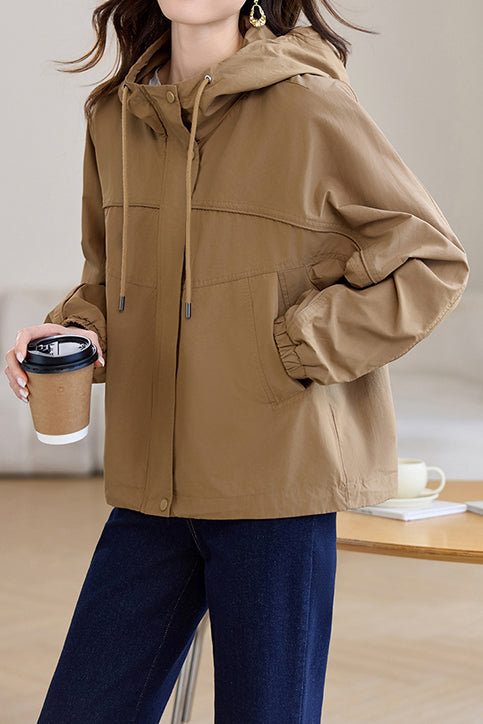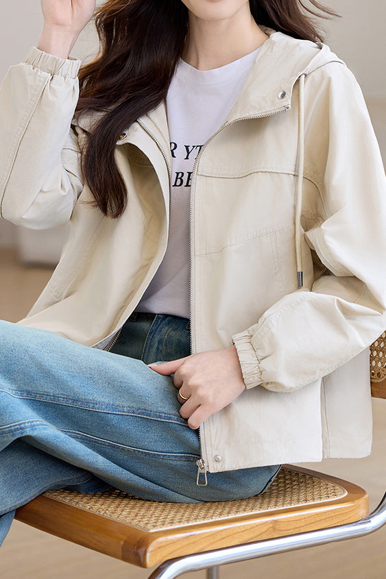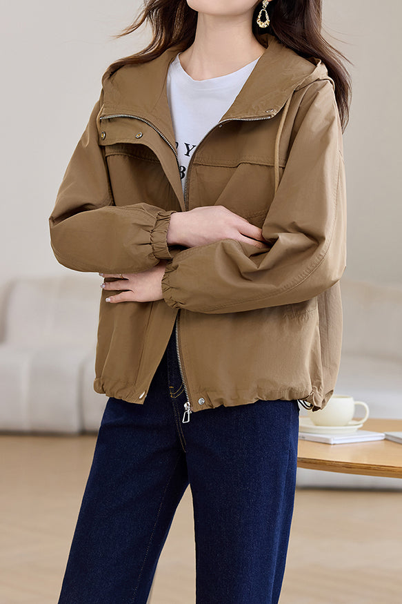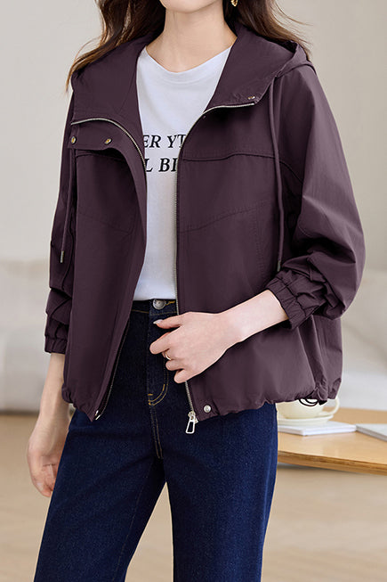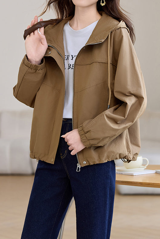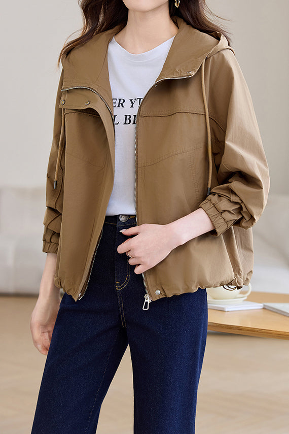 Casual Zip-Up Drawstring Hooded Jacket