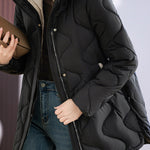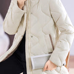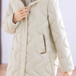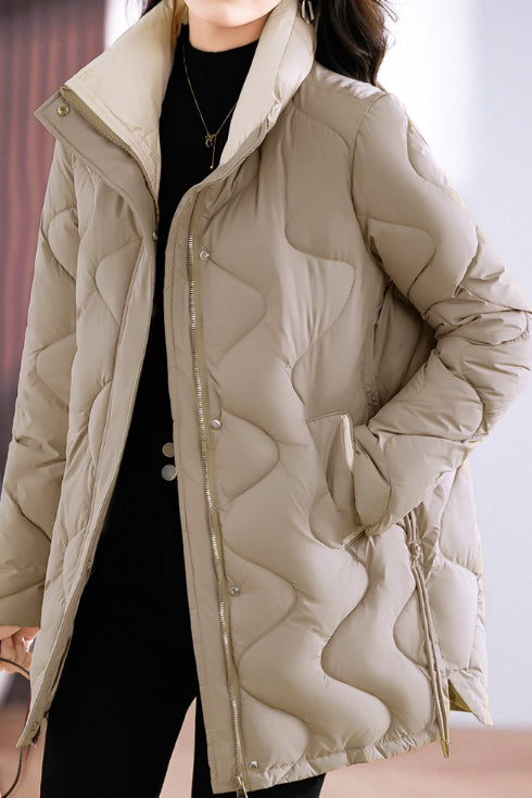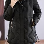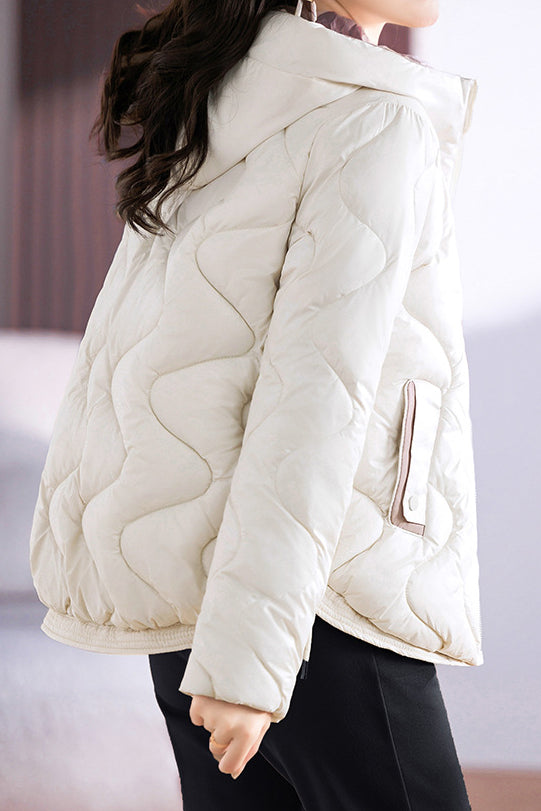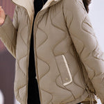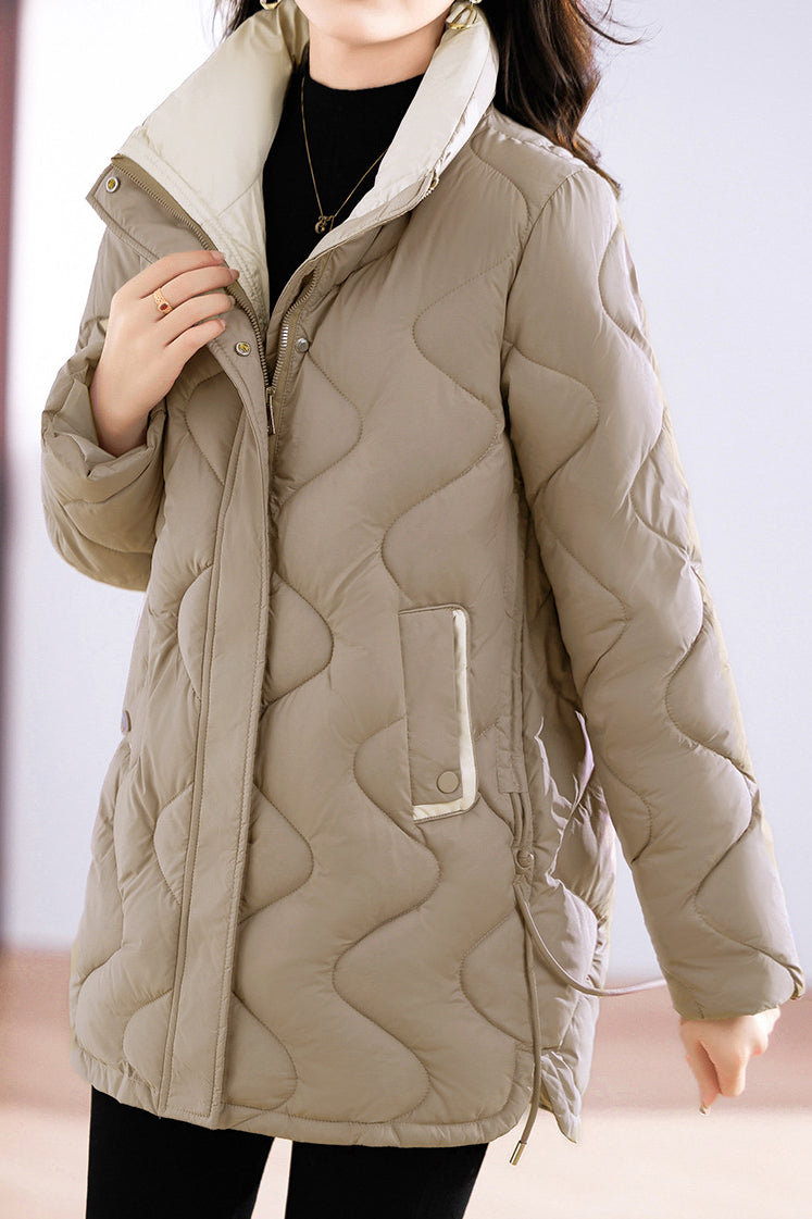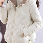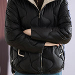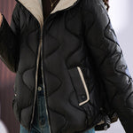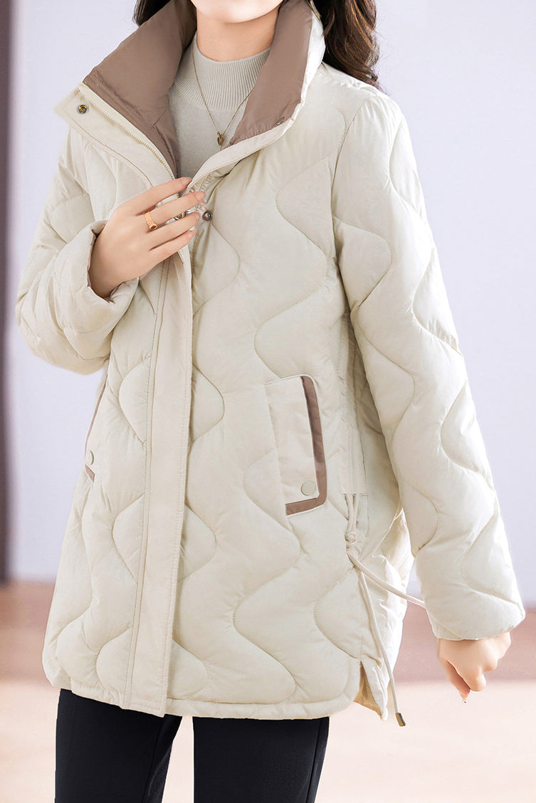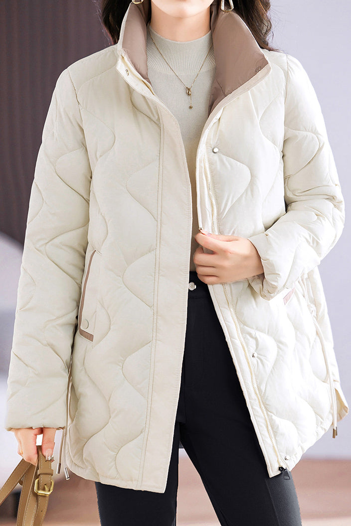 Short Cotton Jacket with a hood and long sleeves, front zipper closure, adjustable drawstring on both sides; Long Cotton Jacket with stand collar, long sleeves, front zipper closure, and adjustable drawstrings on both sides |