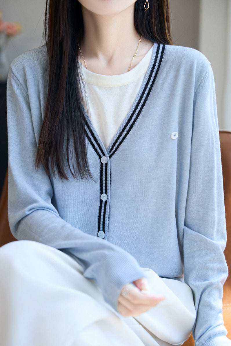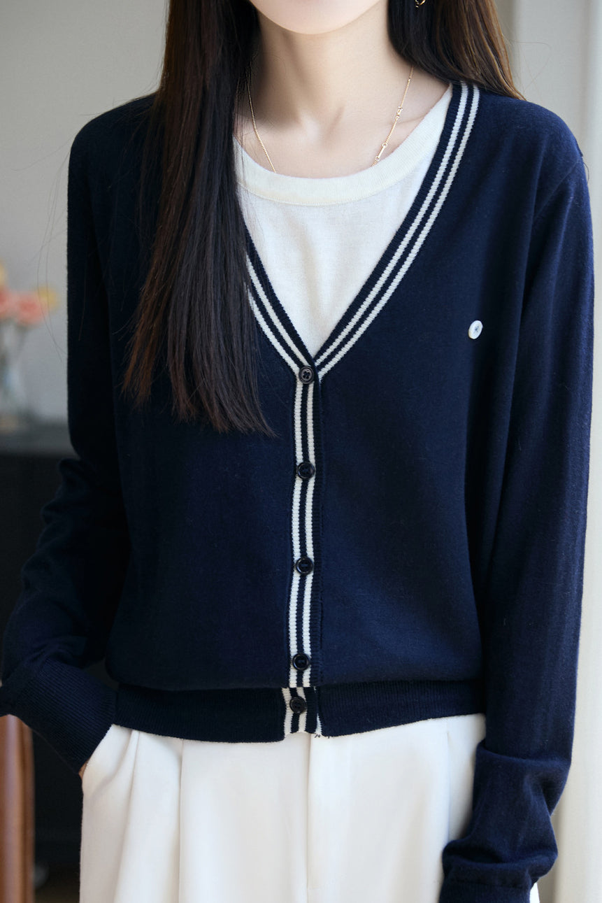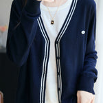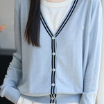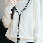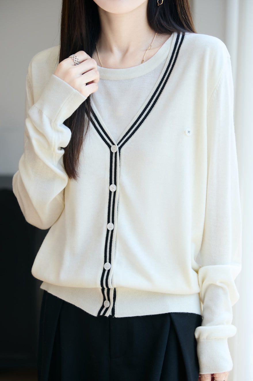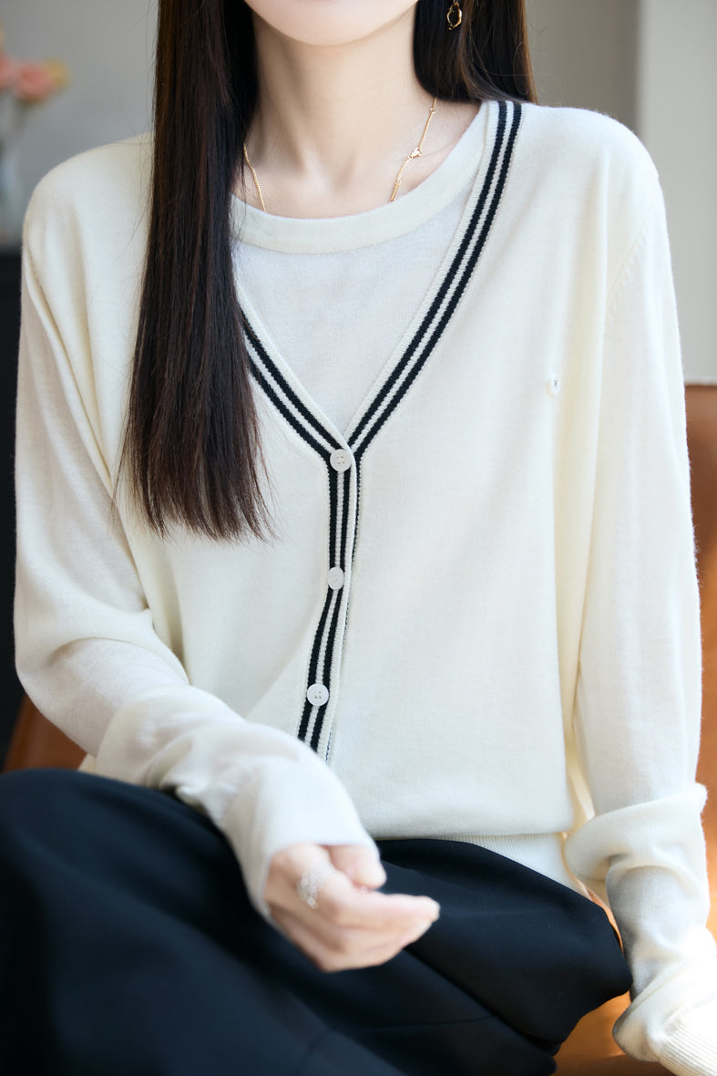 V-Neck Cardigan with Round Neck Knit Faux Layered Sweater