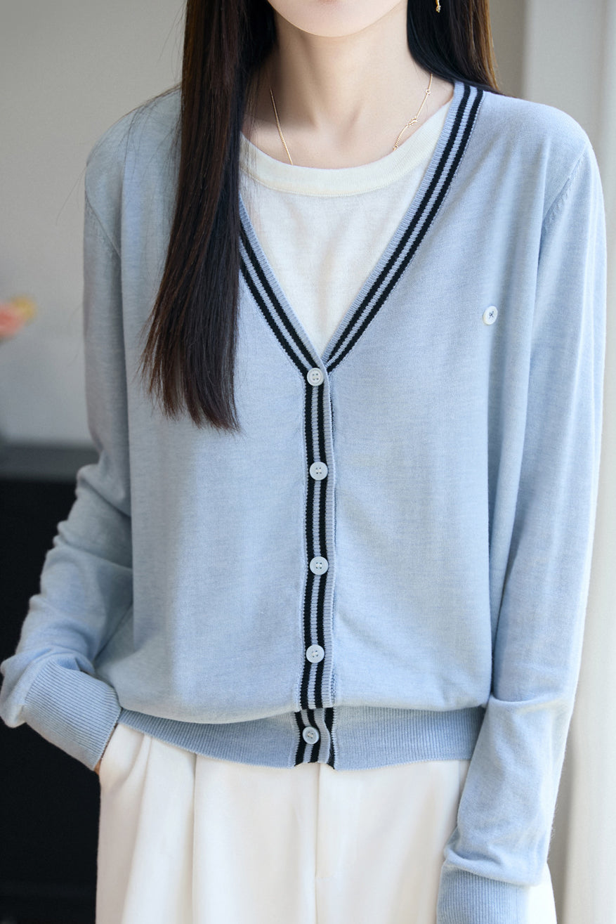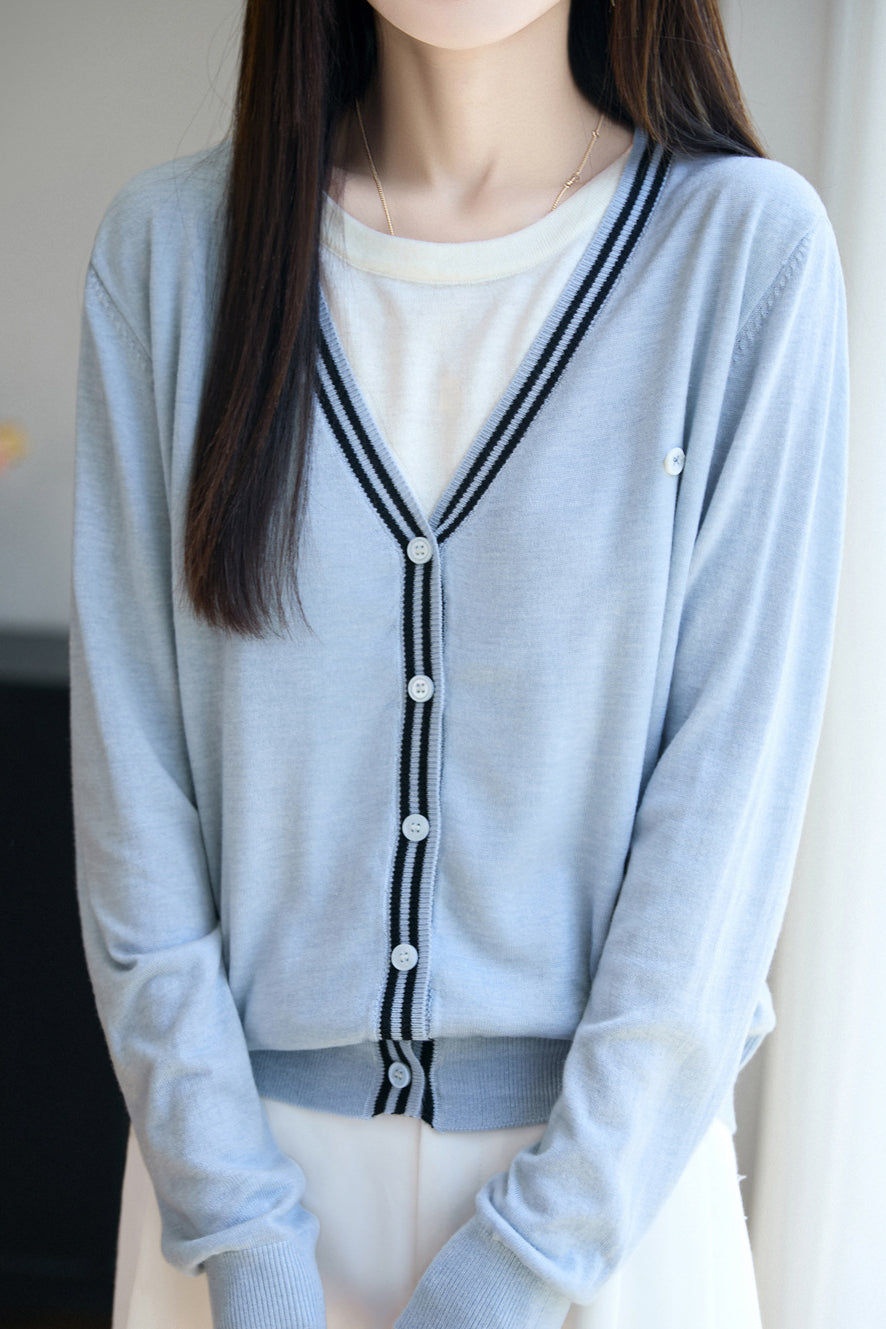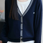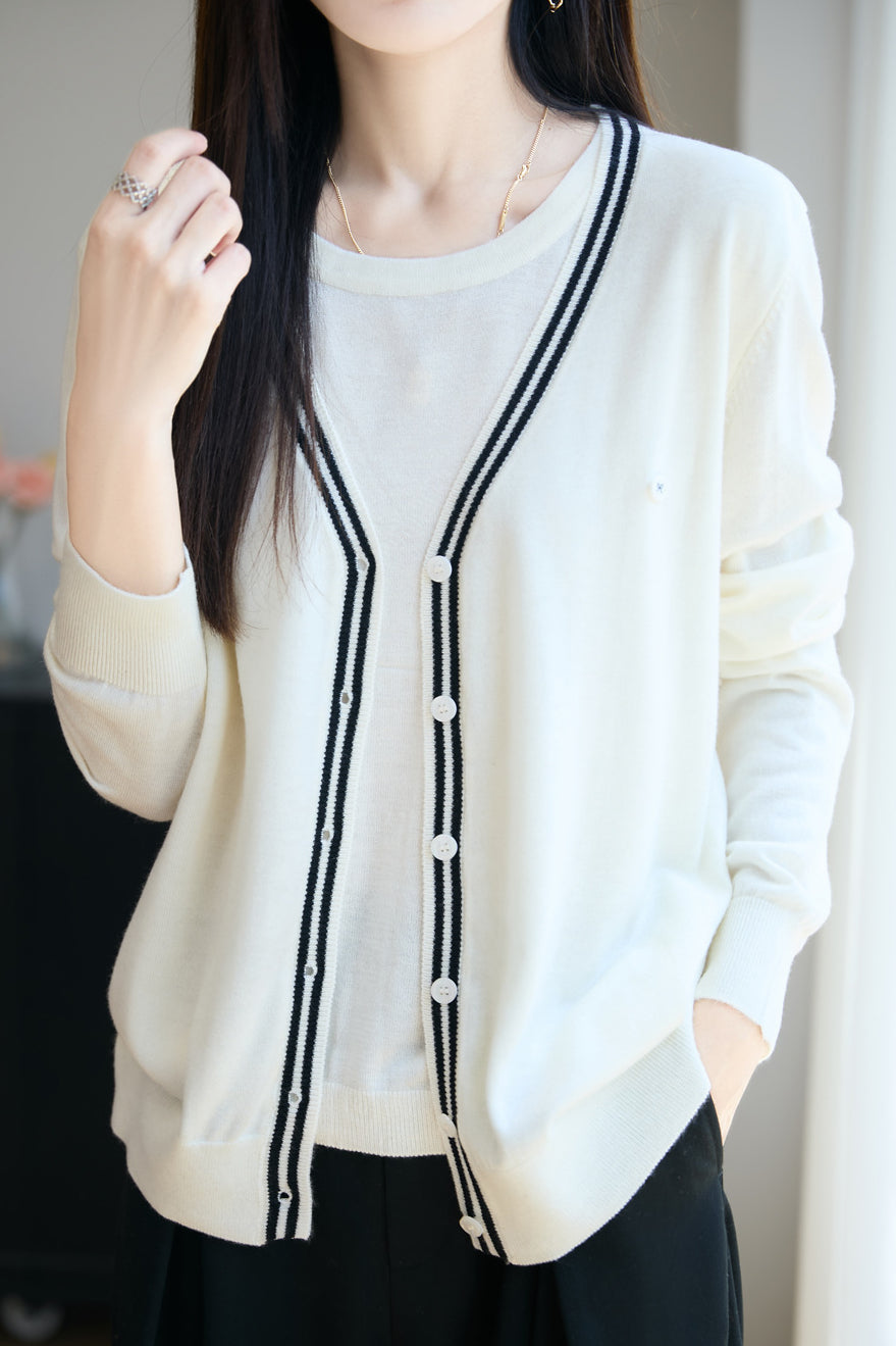 V-Neck Cardigan with Round Neck Knit Faux Layered Sweater