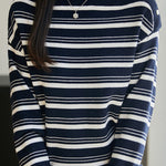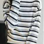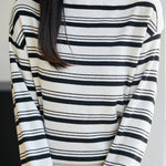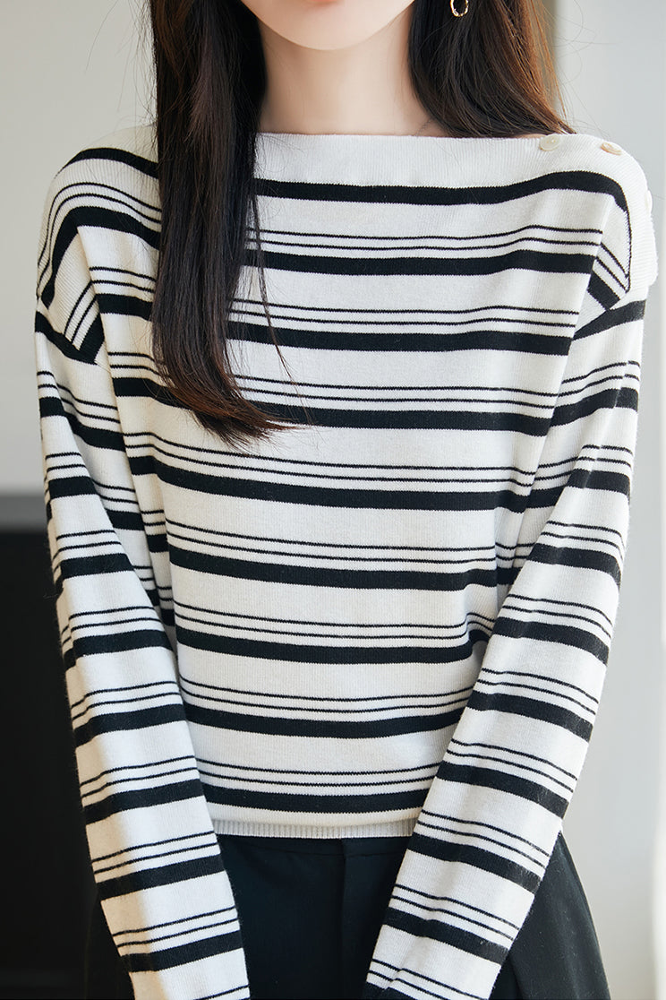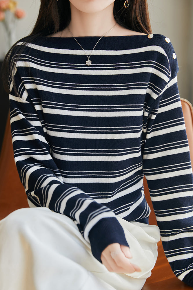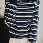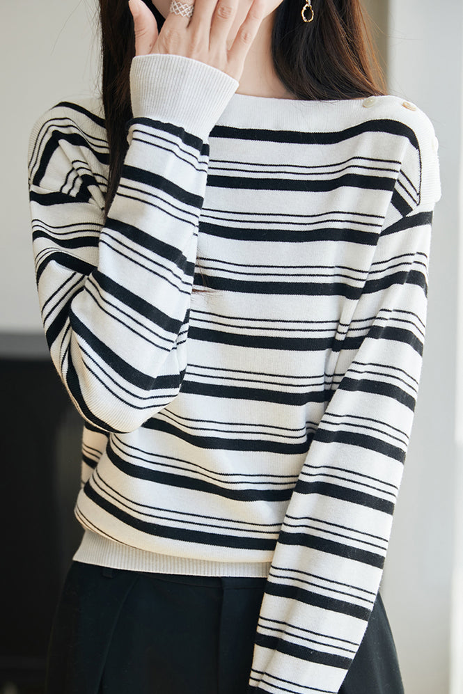 Exquisite Elegant Striped Color-Block Button Knit Top