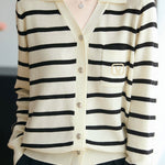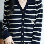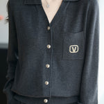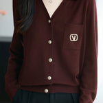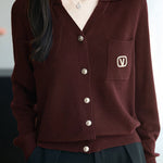 Knitted cardigan, loose fit, v-shaped lapel, embroidered pocket on chest, placket with exquisite buttons |