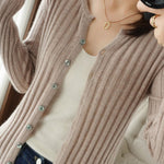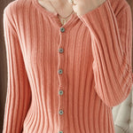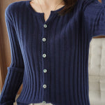Casual Solid-Color Crew Neck Knitted Cardigan