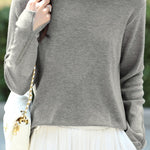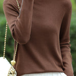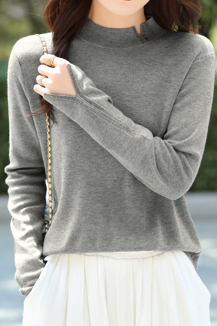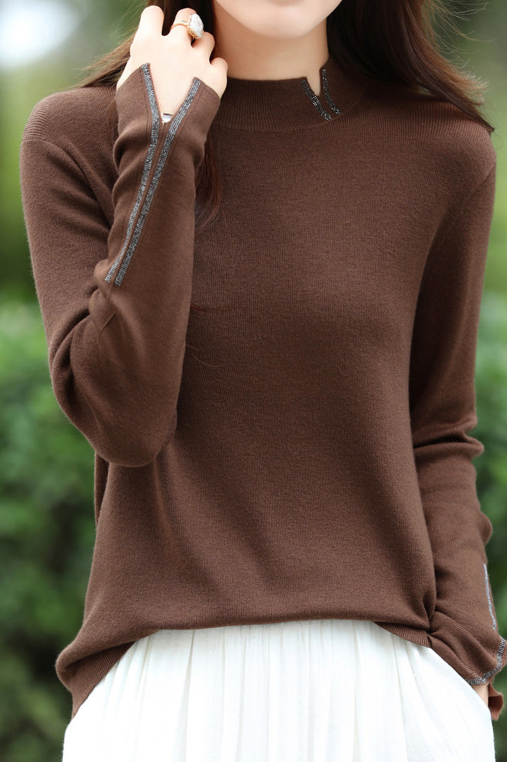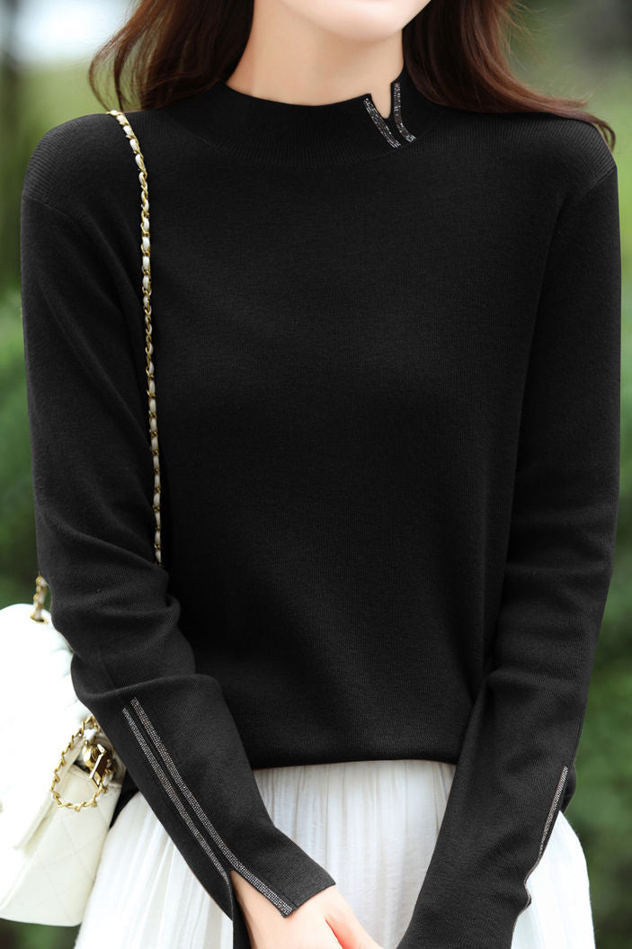 Casual Solid-Color Rhinestone Half-High Neck Pullover Sweater