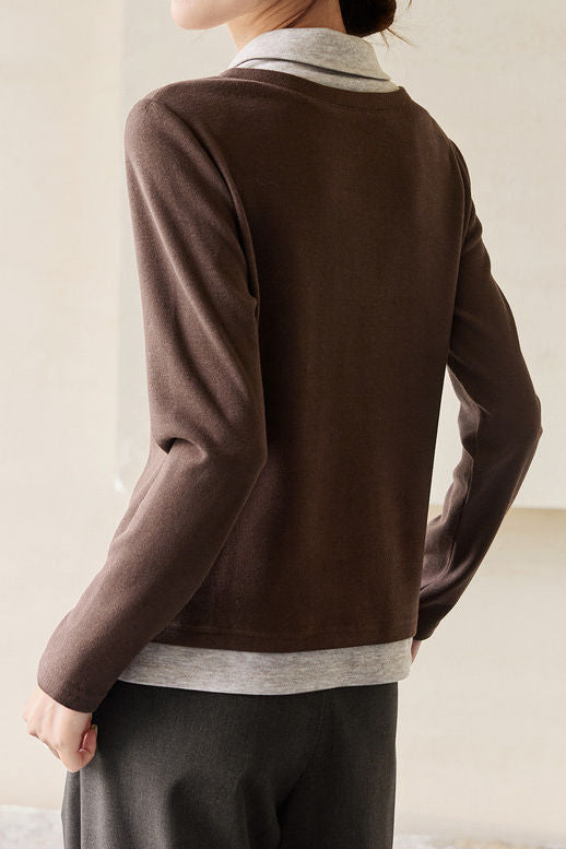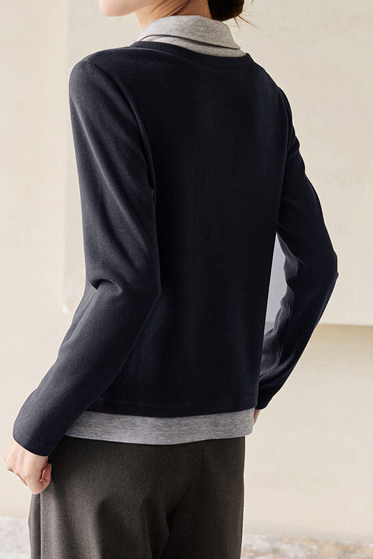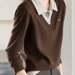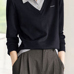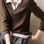 Casual Commuter Fake Two-Piece T-Shirt Pullover Color-Block Shirt