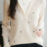 Casual Ribbed Jacquard Fake Two-Piece Sweater