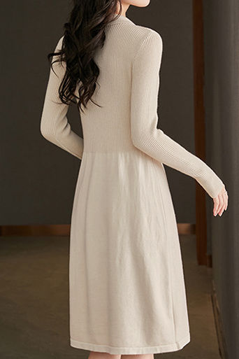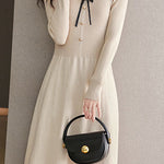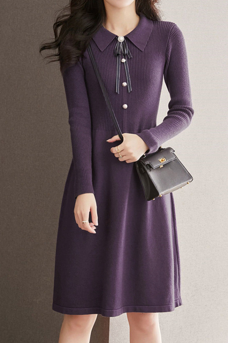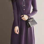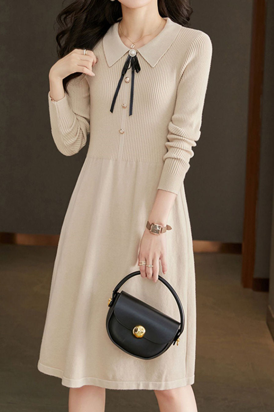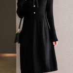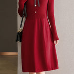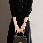 Elegant Temperament Shirt Collar Long-Sleeve Knitted Dress