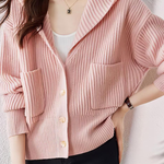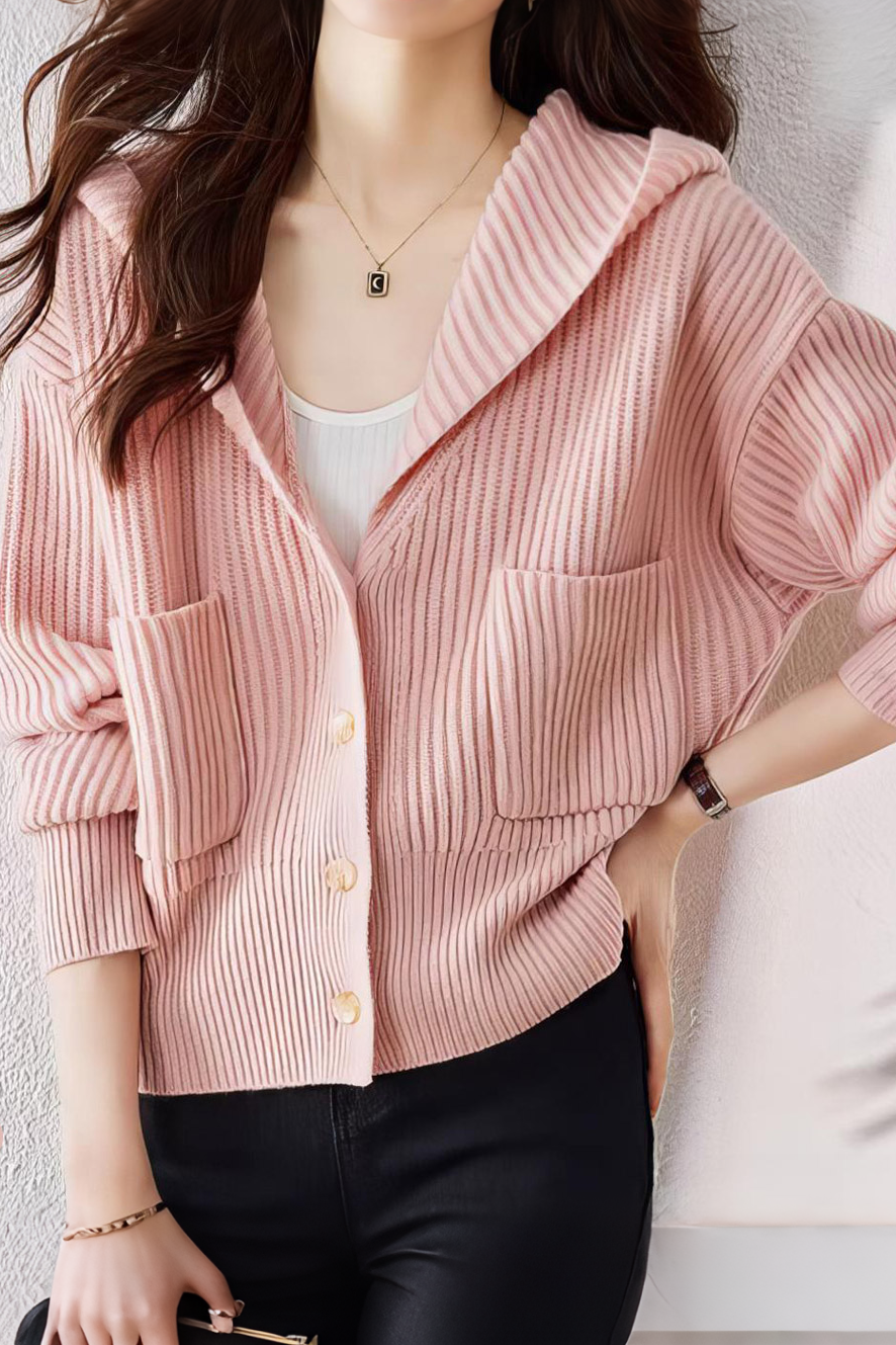 Casual Minimalist Hooded Long-Sleeve Ribbed Knitted Cardigan