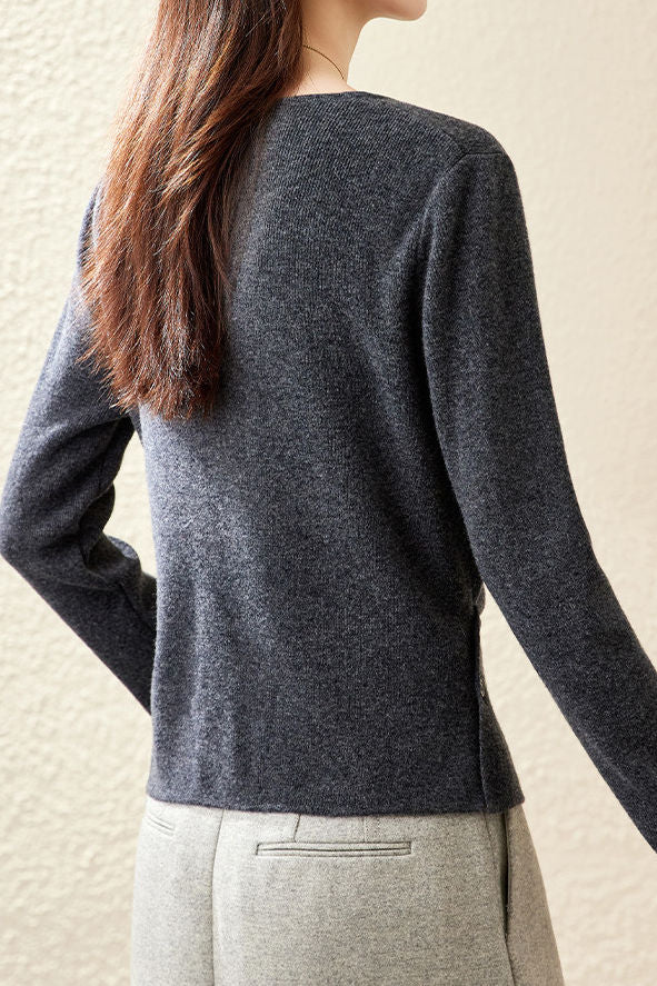 Casual Versatile Solid-Color Asymmetric Overlapped Sweater