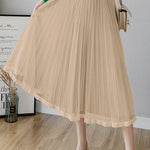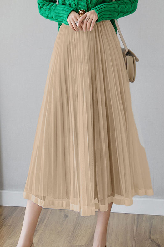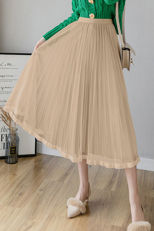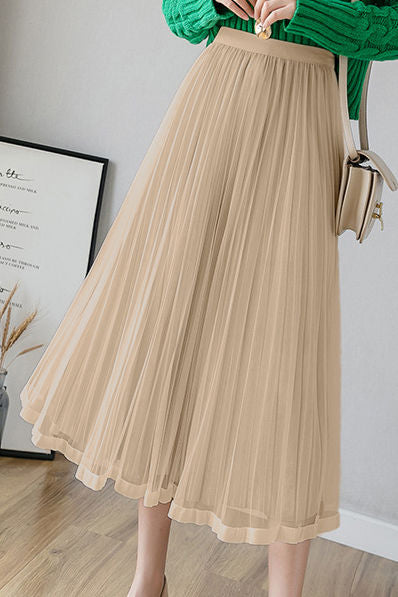 Casual Versatile Solid-Color Tulle Pleated Midi Skirt