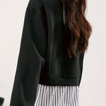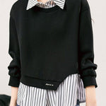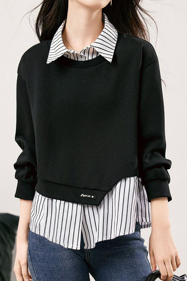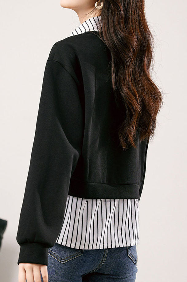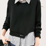 Casual Fake Two-Piece Striped Patchwork Shirt Collar Sweatshirt