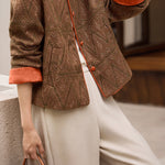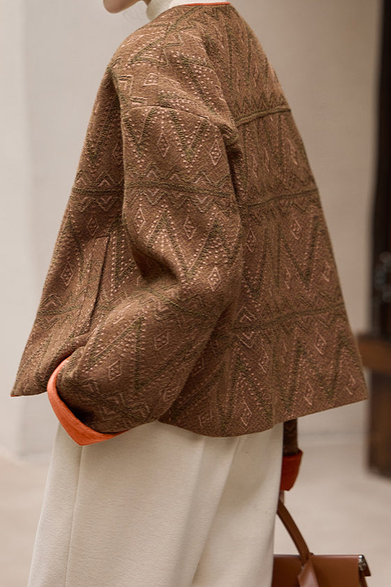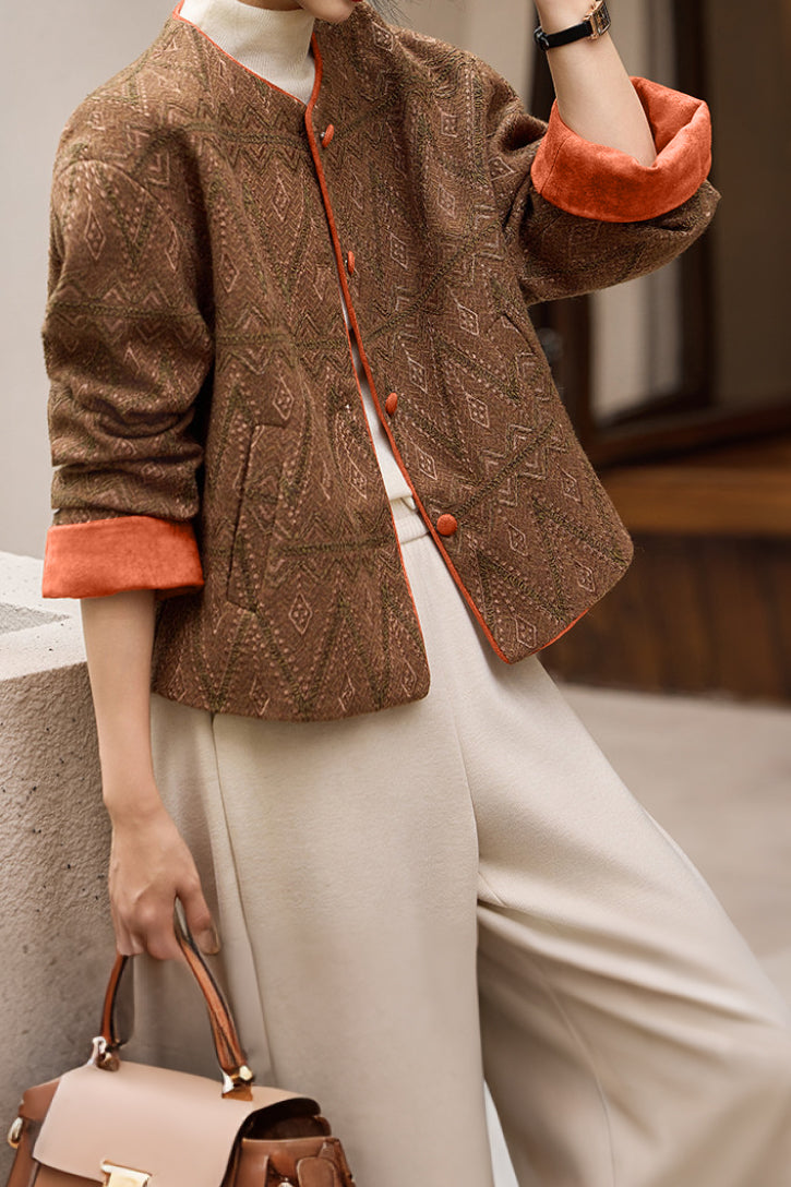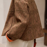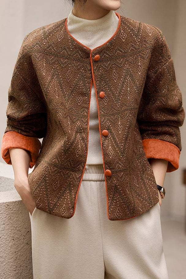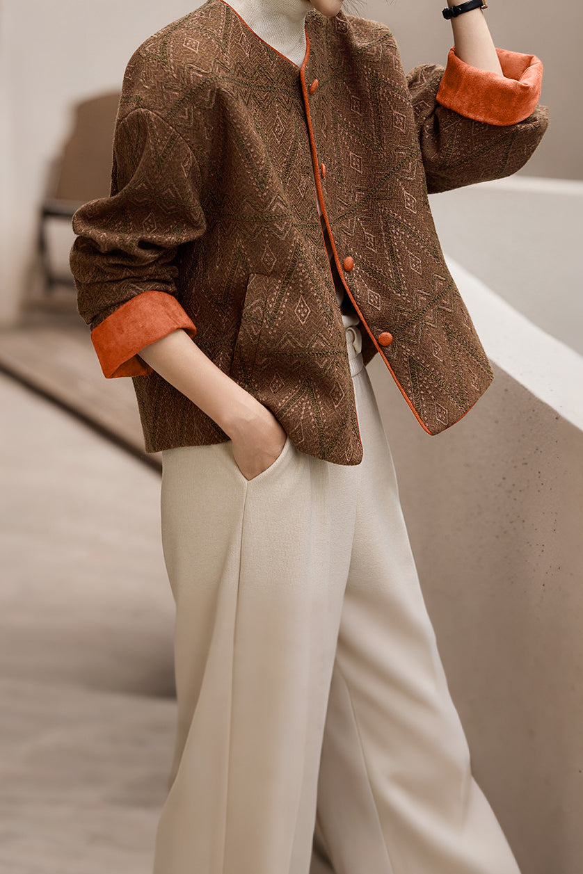 Casual Versatile Jacquard Textured Crew Neck Color-Block Coat